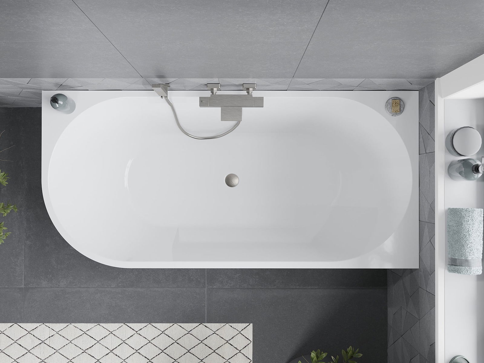 Mexen Mia baignoire autoportante d'angle droit 160 x 80 cm, blanc/noir, trop-plein nickel brossé - 52691608075P-97
