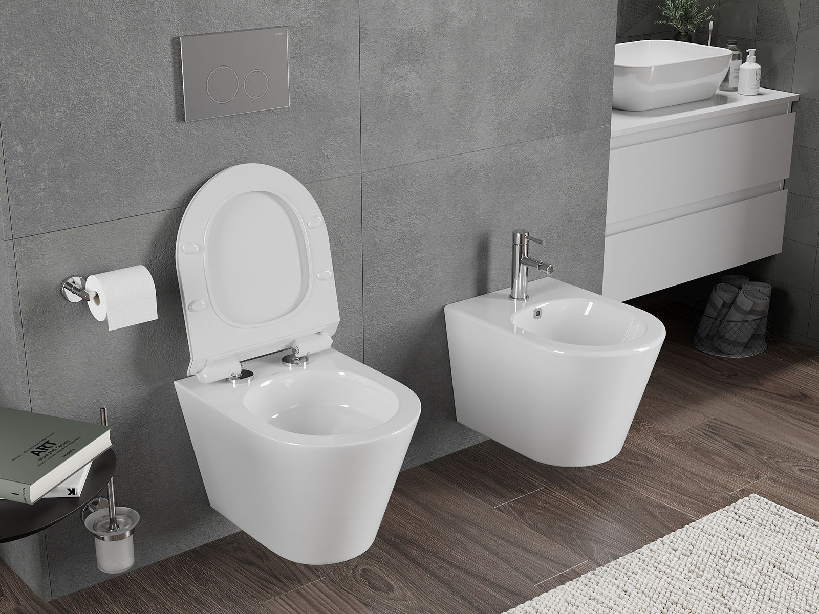 Système moderne dans lequel tous les éléments de montage ont été cachés. C'est non seulement esthétique, mais aussi une solution très pratique. Cela facilite le maintien de la salle de bain propre et assure un aspect soigné de la salle de bain.