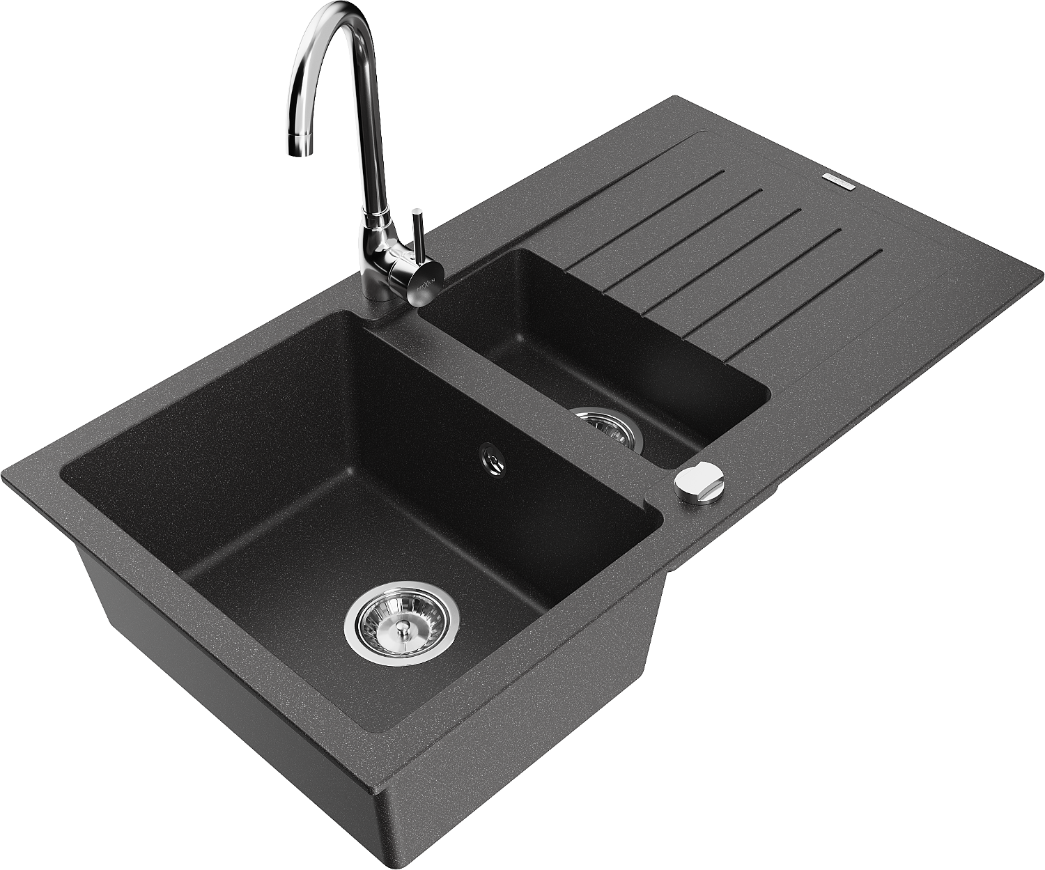 Mexen Matias évier de cuisine en granit 1,5 bac avec égouttoir et mitigeur Telma, noir moucheté - 6502-76-670200-00