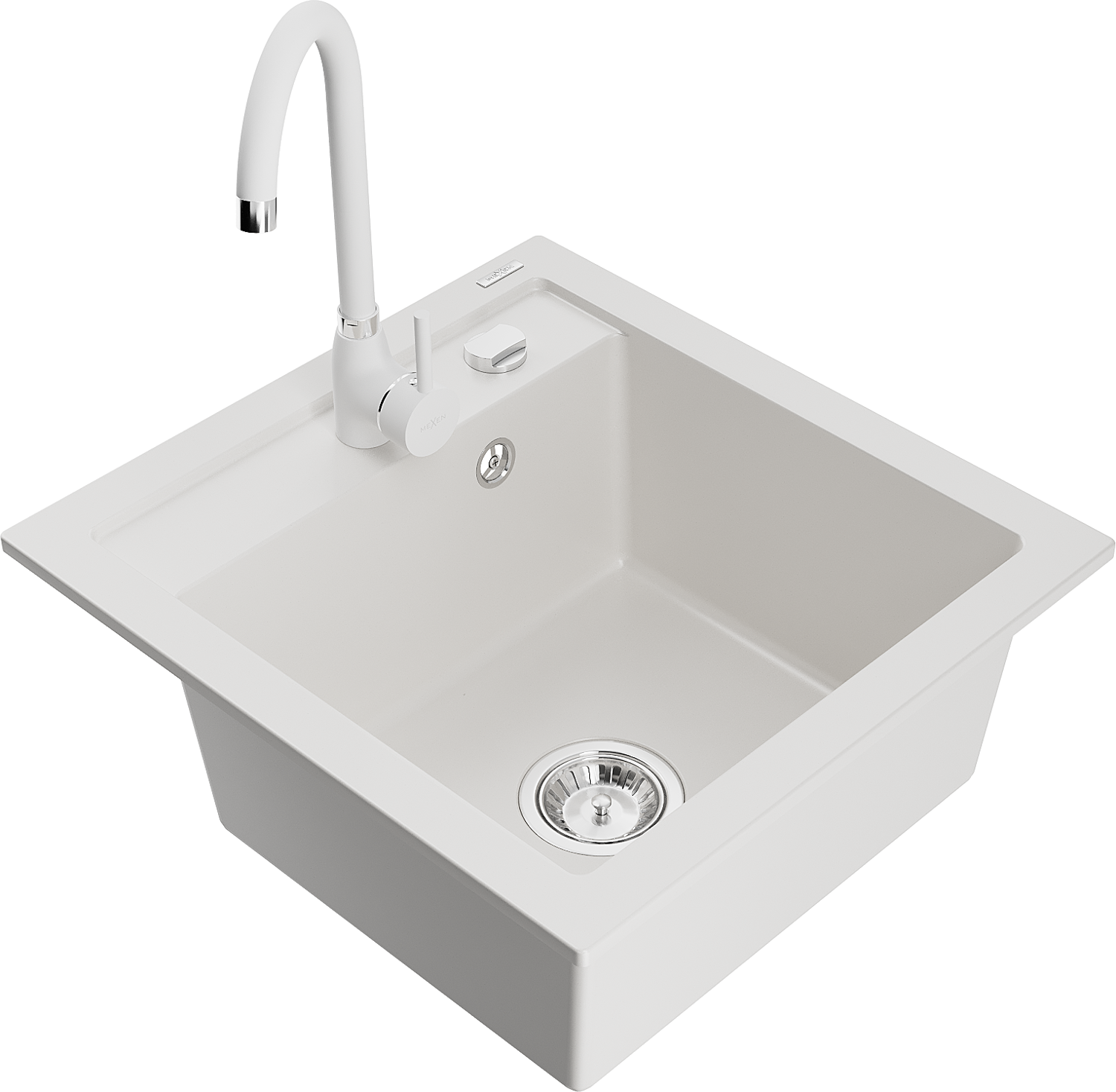 Mexen Vito évier en granit 1 bac avec robinet de cuisine Telma, blanc - 6503-20-670200-20