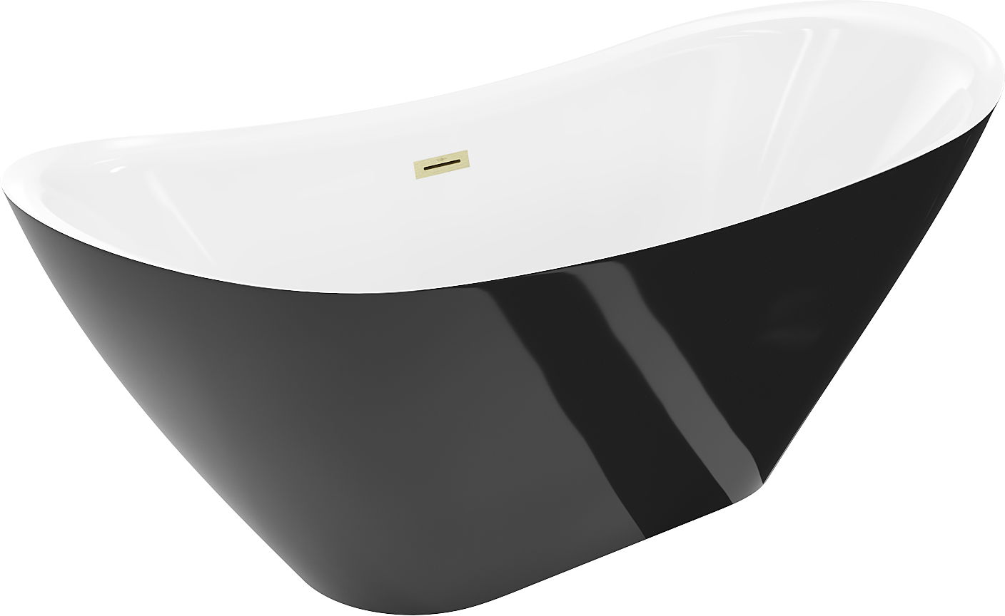 Mexen Lotos baignoire autoportante 180 x 75 cm, blanc/noir, trop-plein brossé doré - 52051807775-55