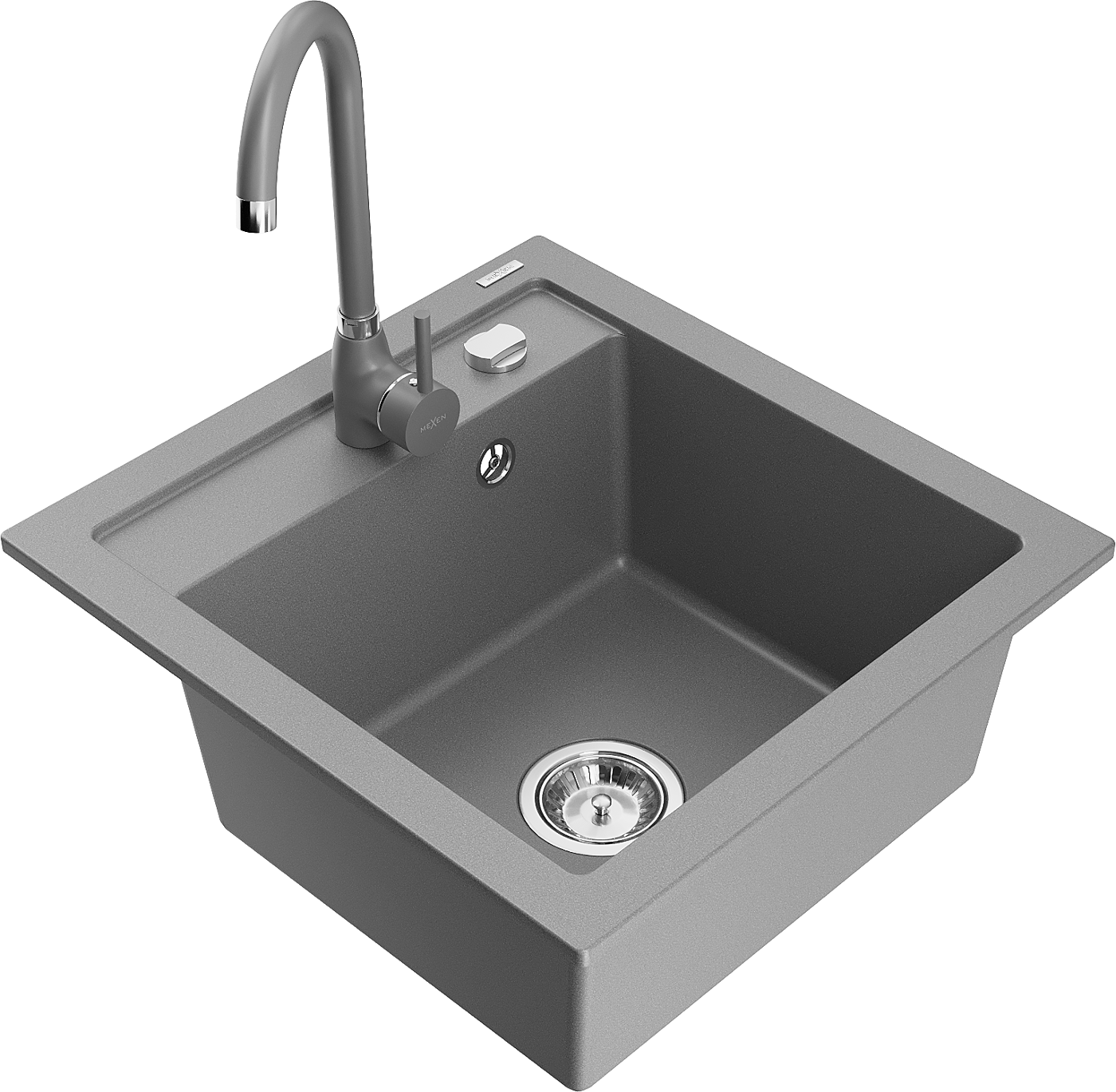 Mexen Vito évier en granit 1 bac avec mitigeur de cuisine Telma, gris - 6503-71-670200-71
