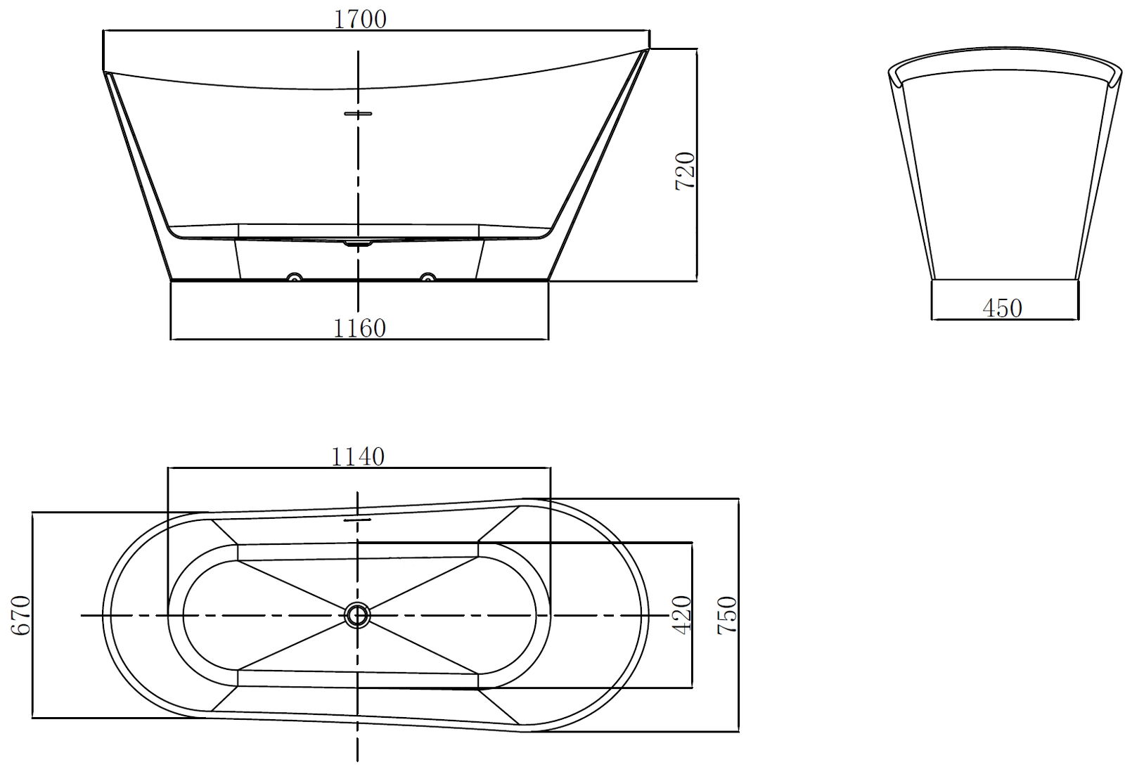 Mexen Dora baignoire autoportante 170 x 75 cm, blanc/noir, trop-plein chromé - 52071707575-01