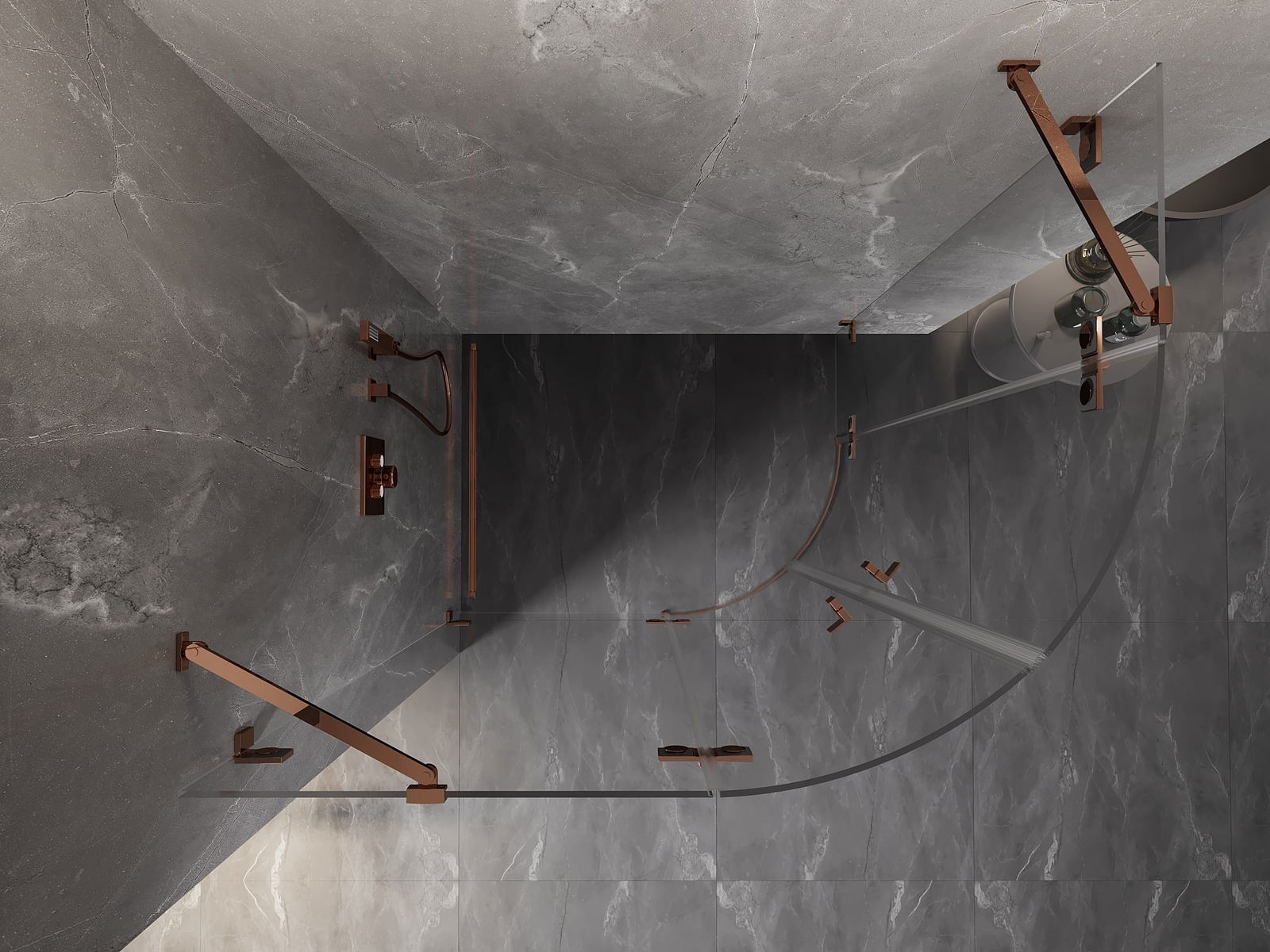 Mexen Lunar cabine de douche semi-circulaire pivotante gauche 100 x 80 cm, transparent, or rose - 833-100L-080P-60-00