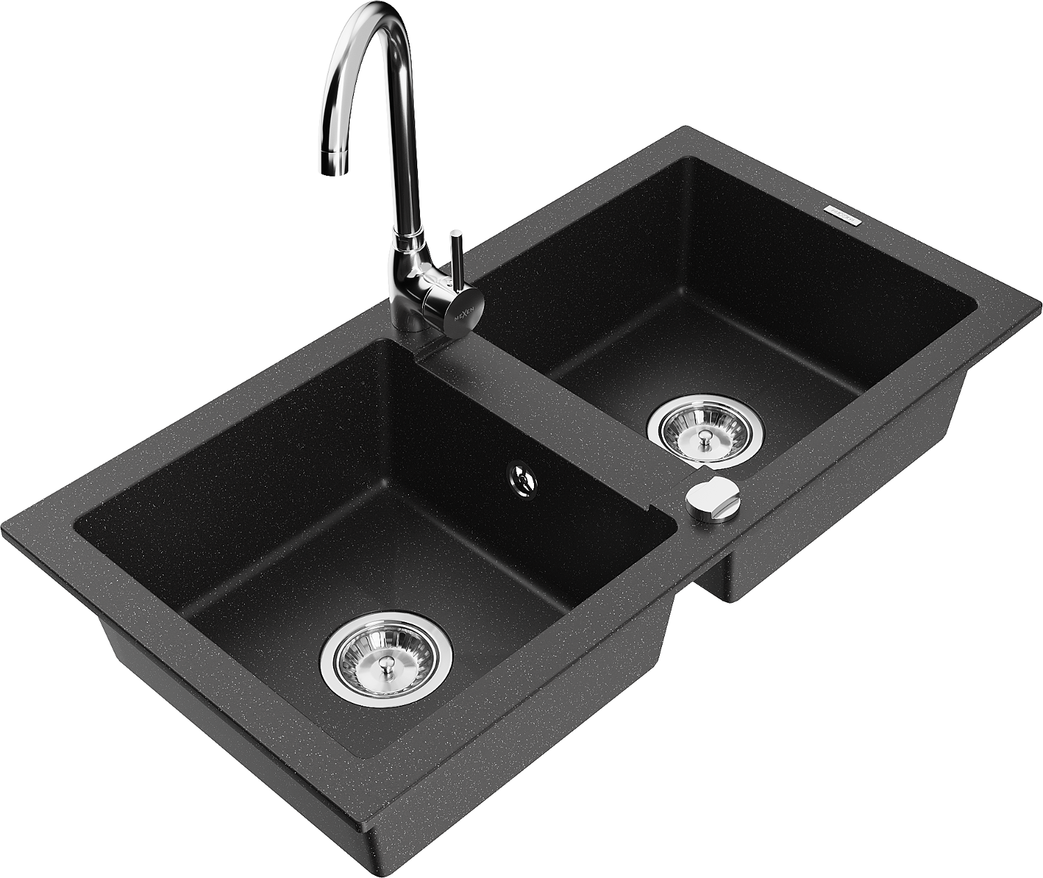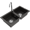 Mexen Mario évier en granit 2 bacs avec robinet de cuisine Telma, noir/argent - 6504-73-670200-00