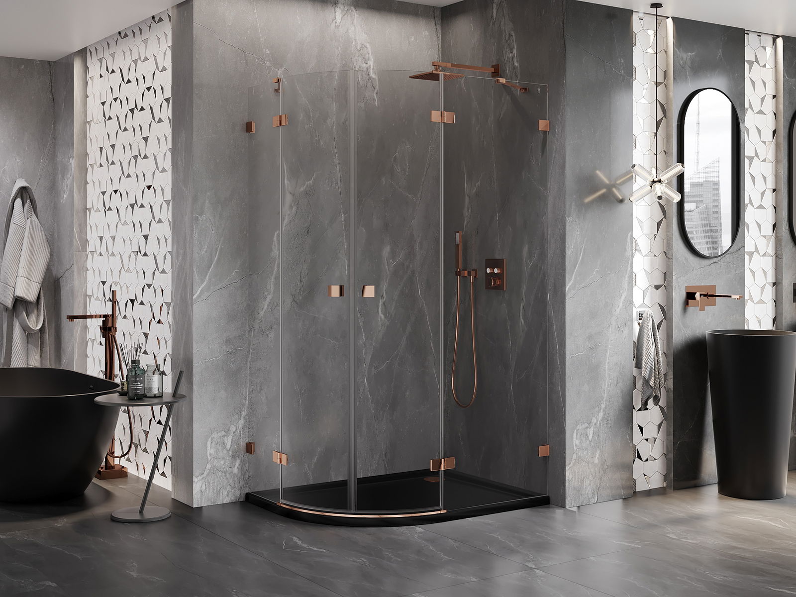 La poignée pratique et confortable est fabriquée en métal durable et résistant. Sa forme à la mode, combinée à une finition assortie à la couleur des profilés, donne à l'ensemble un aspect moderne et stylé, soulignant l'esthétique de chaque salle de bain.