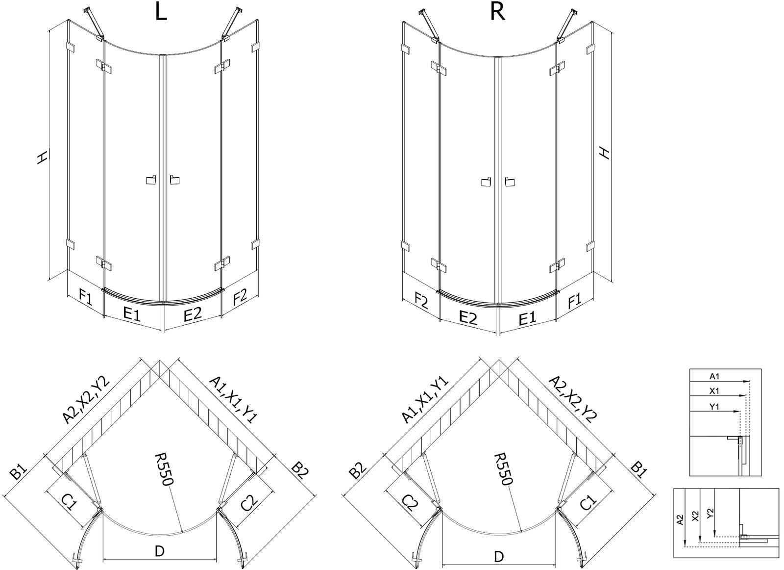 Les portes battantes permettent une liberté maximale lors de l'utilisation. Elles sont équipées de charnières solides fabriquées à partir d'un matériau durable, qui ne posent aucun problème de nettoyage et permettent un accès facile à l'intérieur de la cabine.