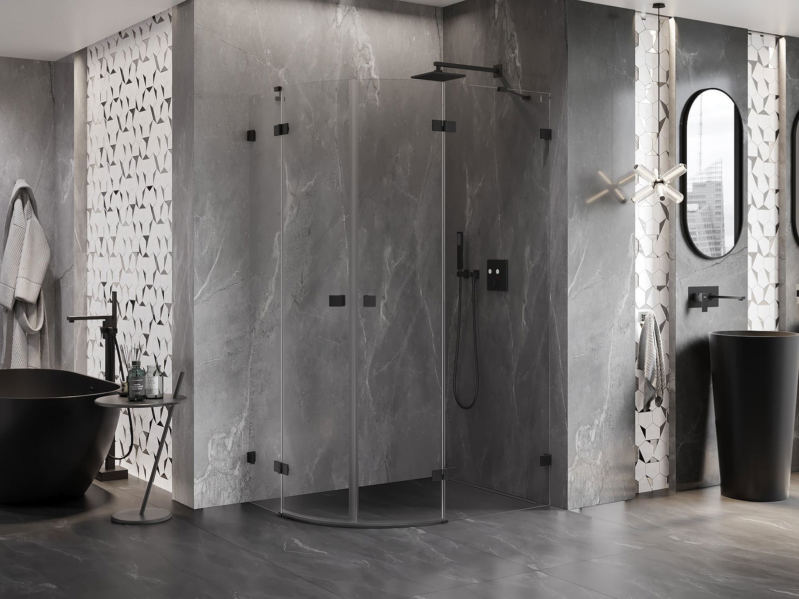 La poignée pratique et confortable est fabriquée en métal durable et résistant. Sa forme à la mode, combinée à une finition assortie à la couleur des profilés, donne à l'ensemble un aspect moderne et stylé, soulignant l'esthétique de chaque salle de bain.