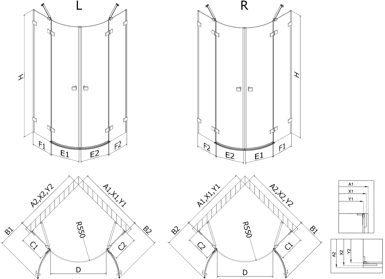 Les portes battantes permettent une liberté maximale lors de l'utilisation. Elles sont équipées de charnières solides fabriquées à partir d'un matériau durable, qui ne posent aucun problème de nettoyage et permettent un accès facile à l'intérieur de la cabine.