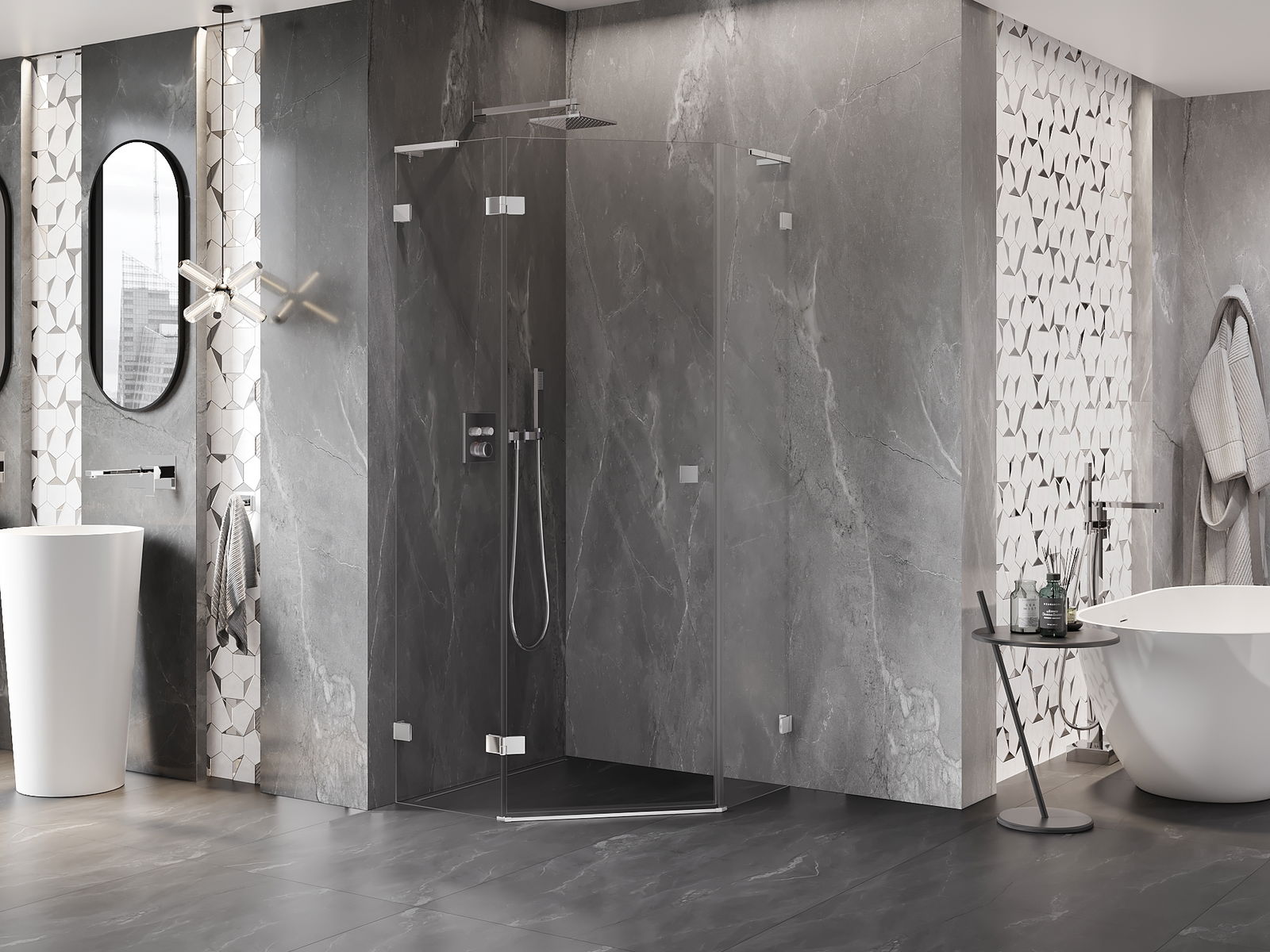 Mexen Lunar L cabine de douche pentagonale pivotante gauche 90 x 90 cm, transparent, chrome - 831L-090L-090P-01-00-L