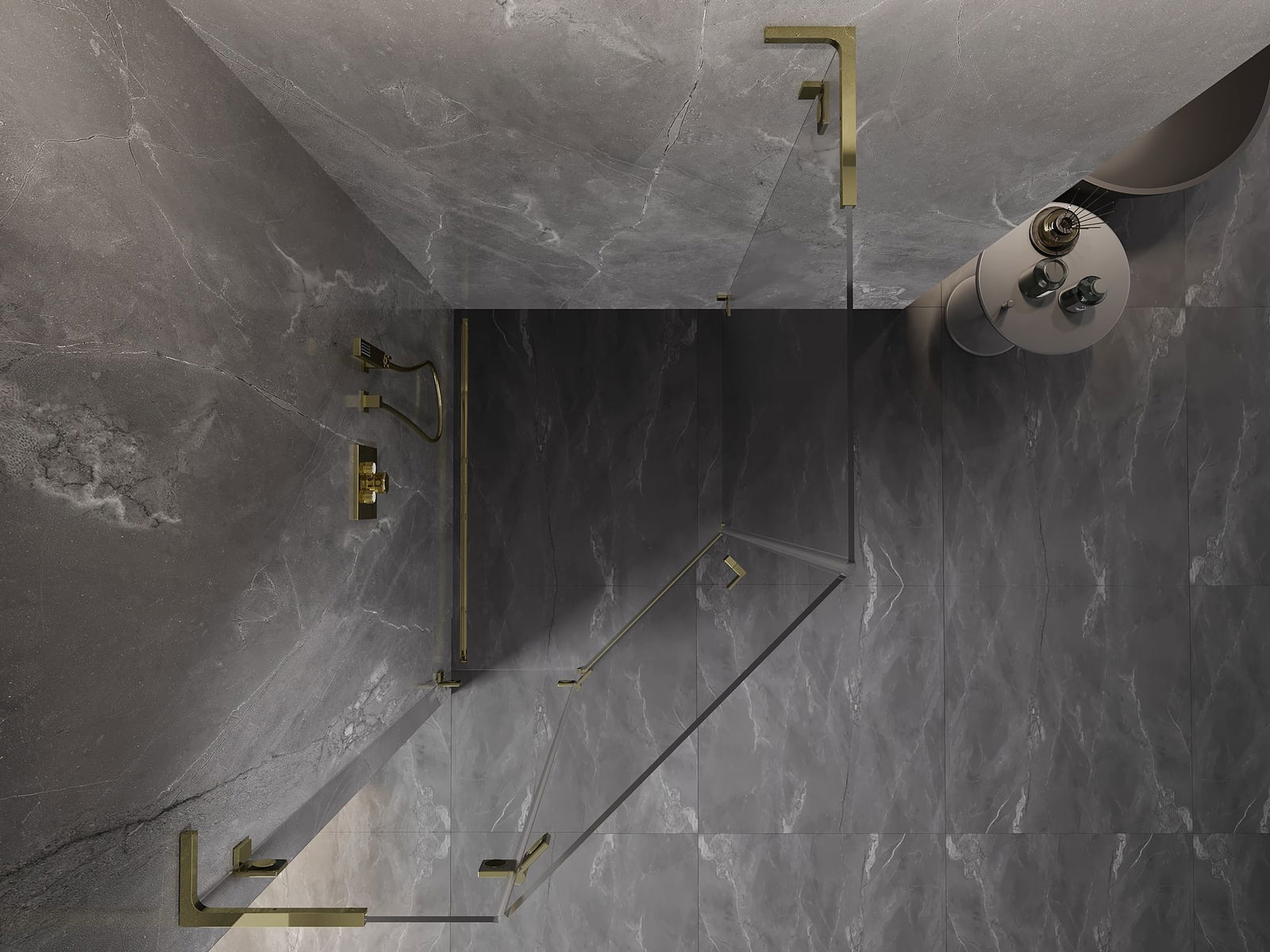 Mexen Lunar L cabine de douche pentagonale pivotante gauche 90 x 100 cm, transparent, doré - 831L-090L-100P-50-00-L