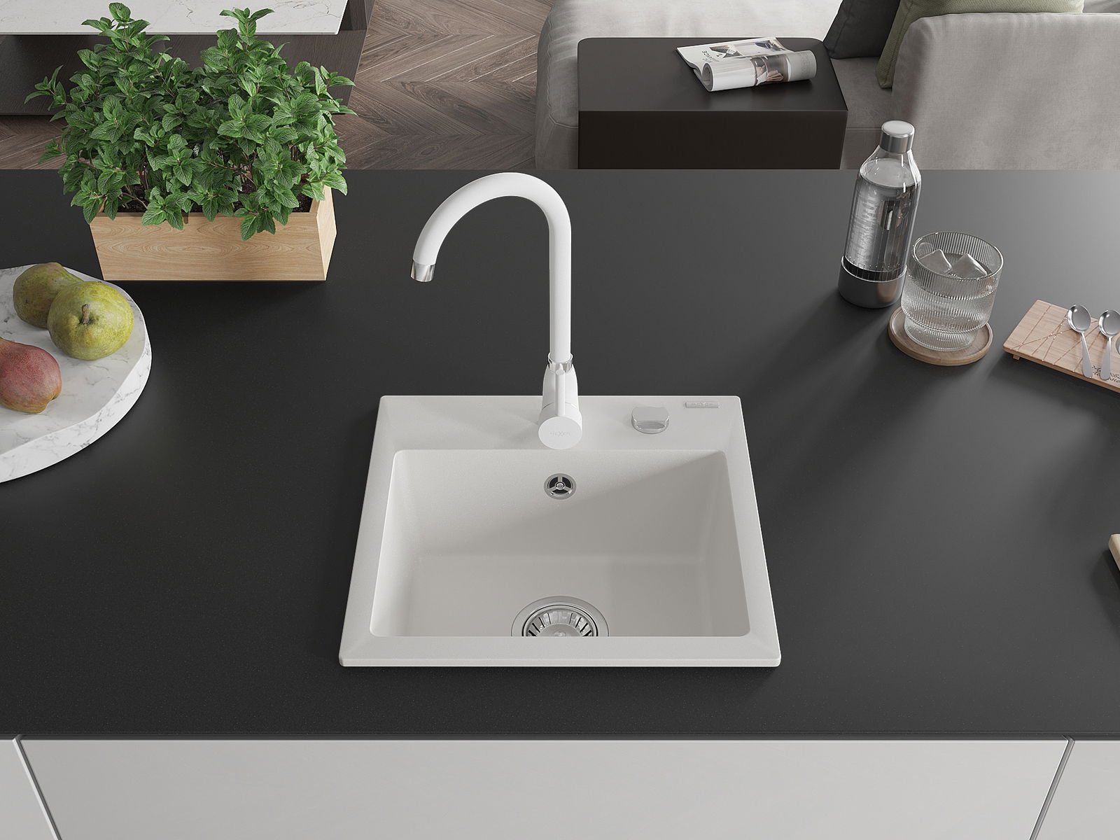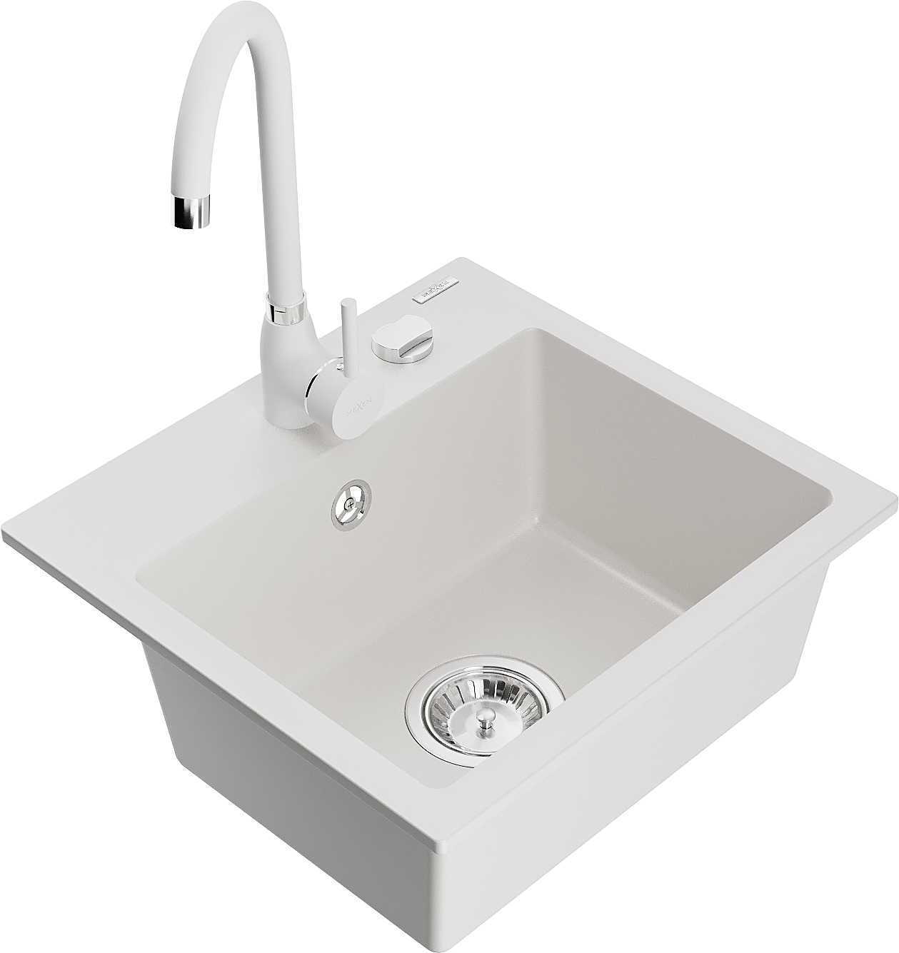 Mexen Milo évier en granit 1 bac avec robinet de cuisine Telma, blanc - 6505-20-670200-20