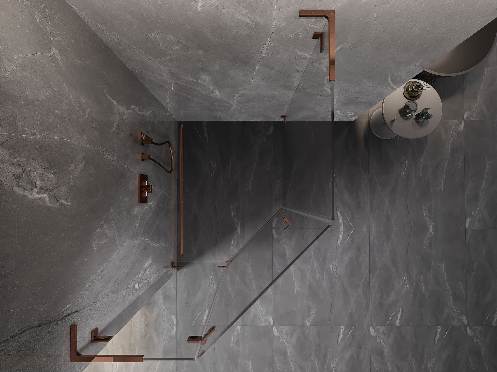 Mexen Lunar L cabine de douche pentagonale pivotante gauche 80 x 90 cm, transparent, or rose - 831L-080L-090P-60-00-L