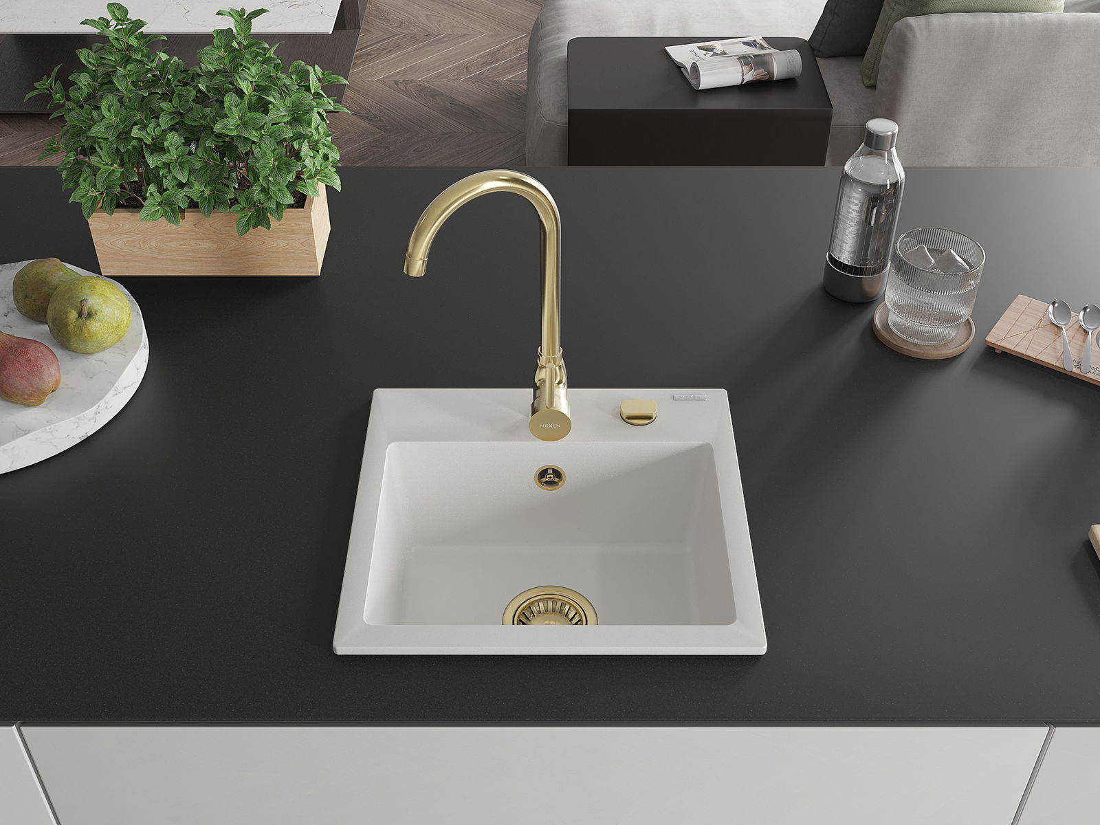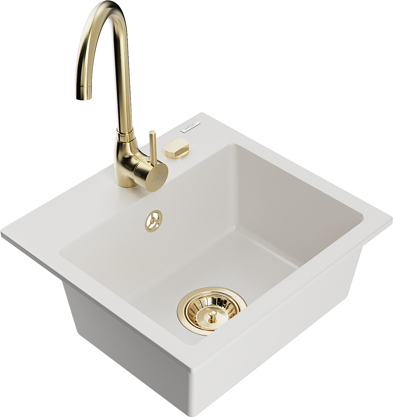 Mexen Milo évier en granit 1 cuve avec robinet de cuisine Telma, blanc - 6505-20-670200-50