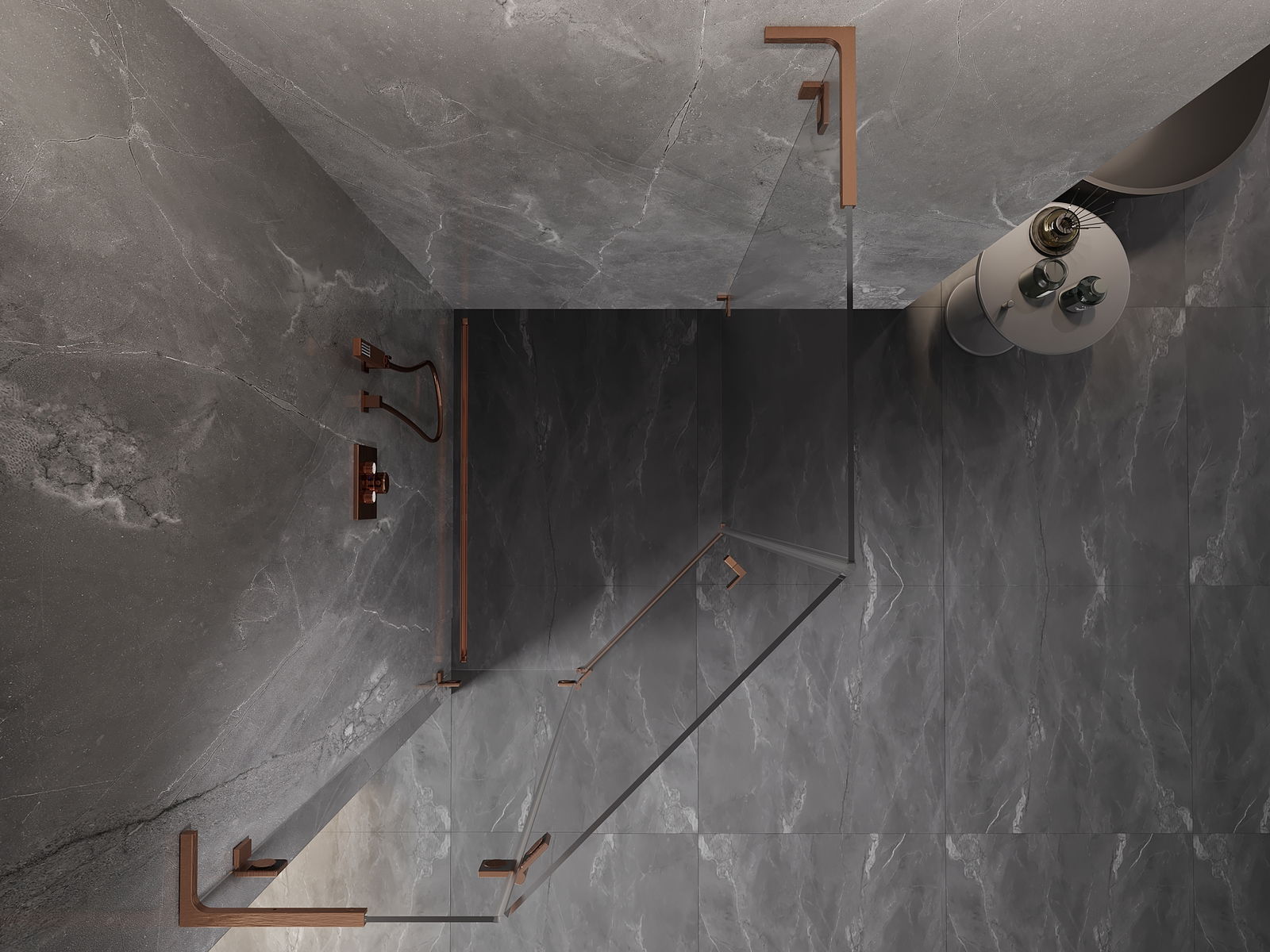 Mexen Lunar L cabine de douche pentagonale pivotante gauche 80 x 90 cm, transparent, cuivre brossé - 831L-080L-090P-65-00-L
