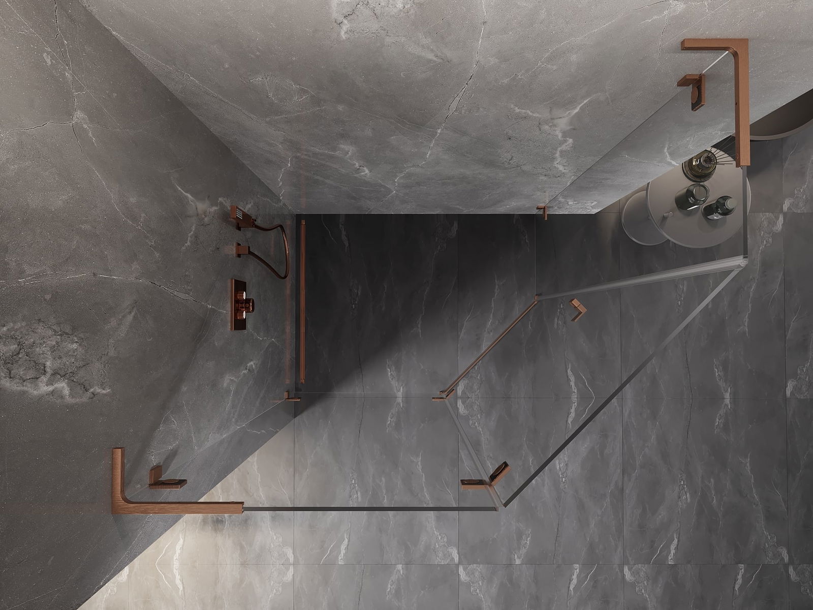 Mexen Lunar L cabine de douche pentagonale pivotante gauche 90 x 80 cm, transparent, cuivre brossé - 831L-090L-080P-65-00-L
