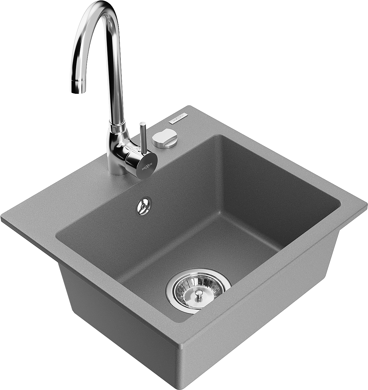 Mexen Milo évier en granit 1 bac avec robinet de cuisine Telma, gris - 6505-71-670200-00