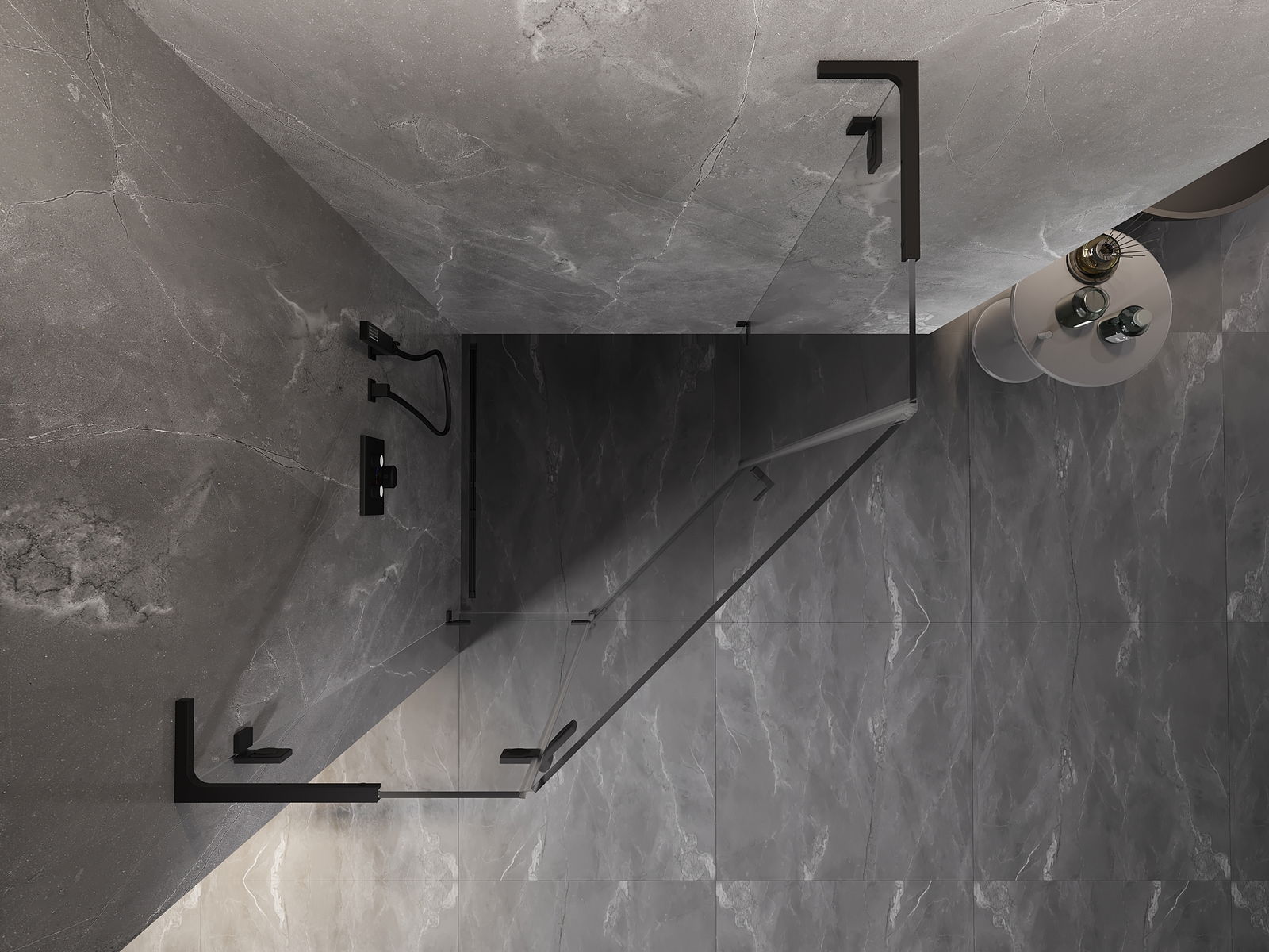 Mexen Lunar L cabine de douche pentagonale pivotante gauche 90 x 90 cm, transparent, noire - 831L-090L-090P-70-00-L