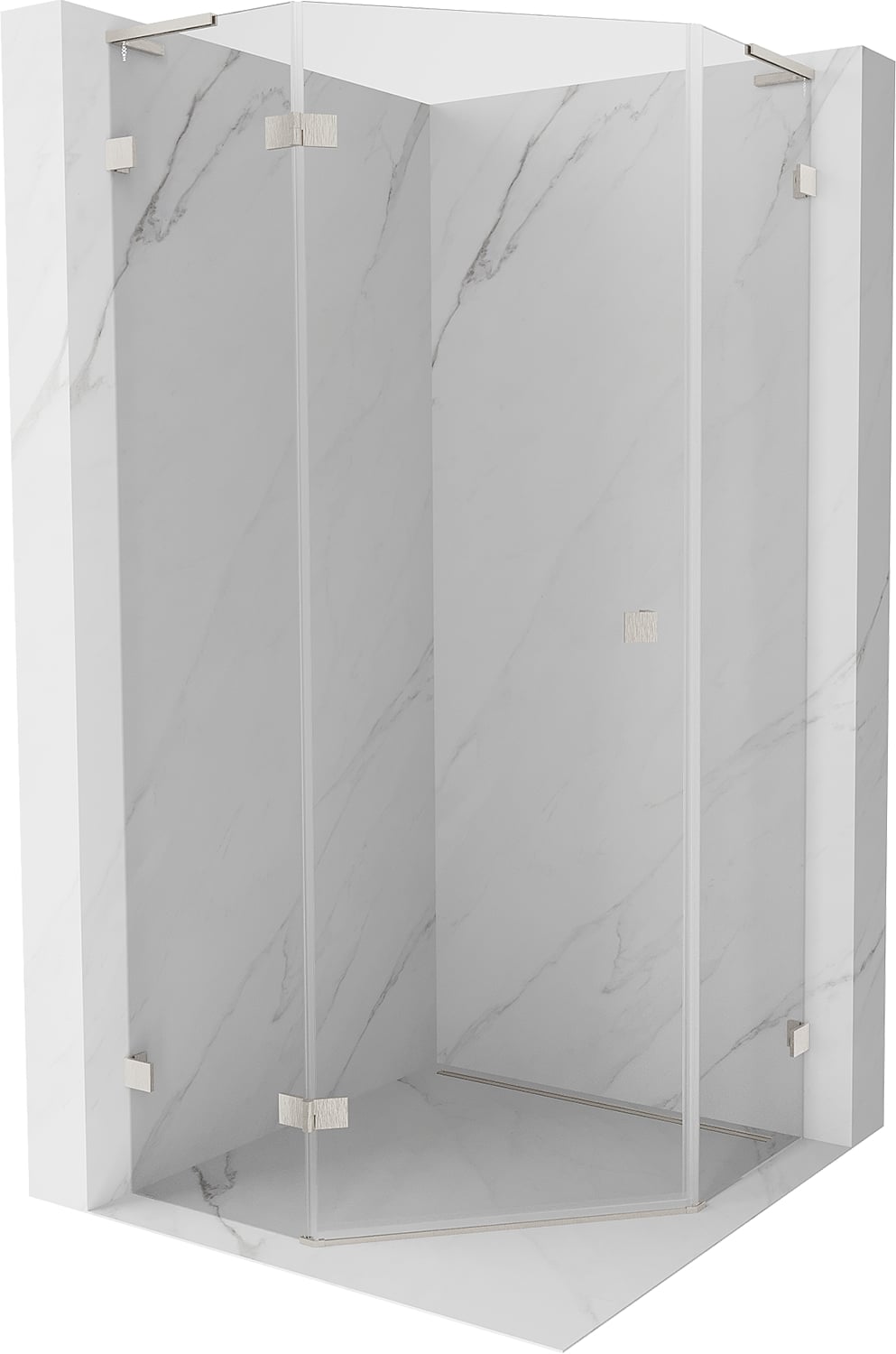 Mexen Lunar L cabine de douche pentagonale pivotante à gauche 90 x 90 cm, transparent, nickel brossé - 831L-090L-090P-97-00-L