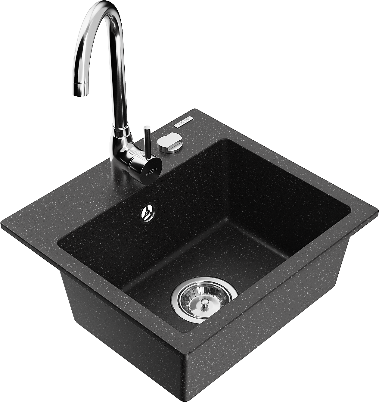Mexen Milo évier en granit 1 bac avec robinet de cuisine Telma, noir/argent - 6505-73-670200-00