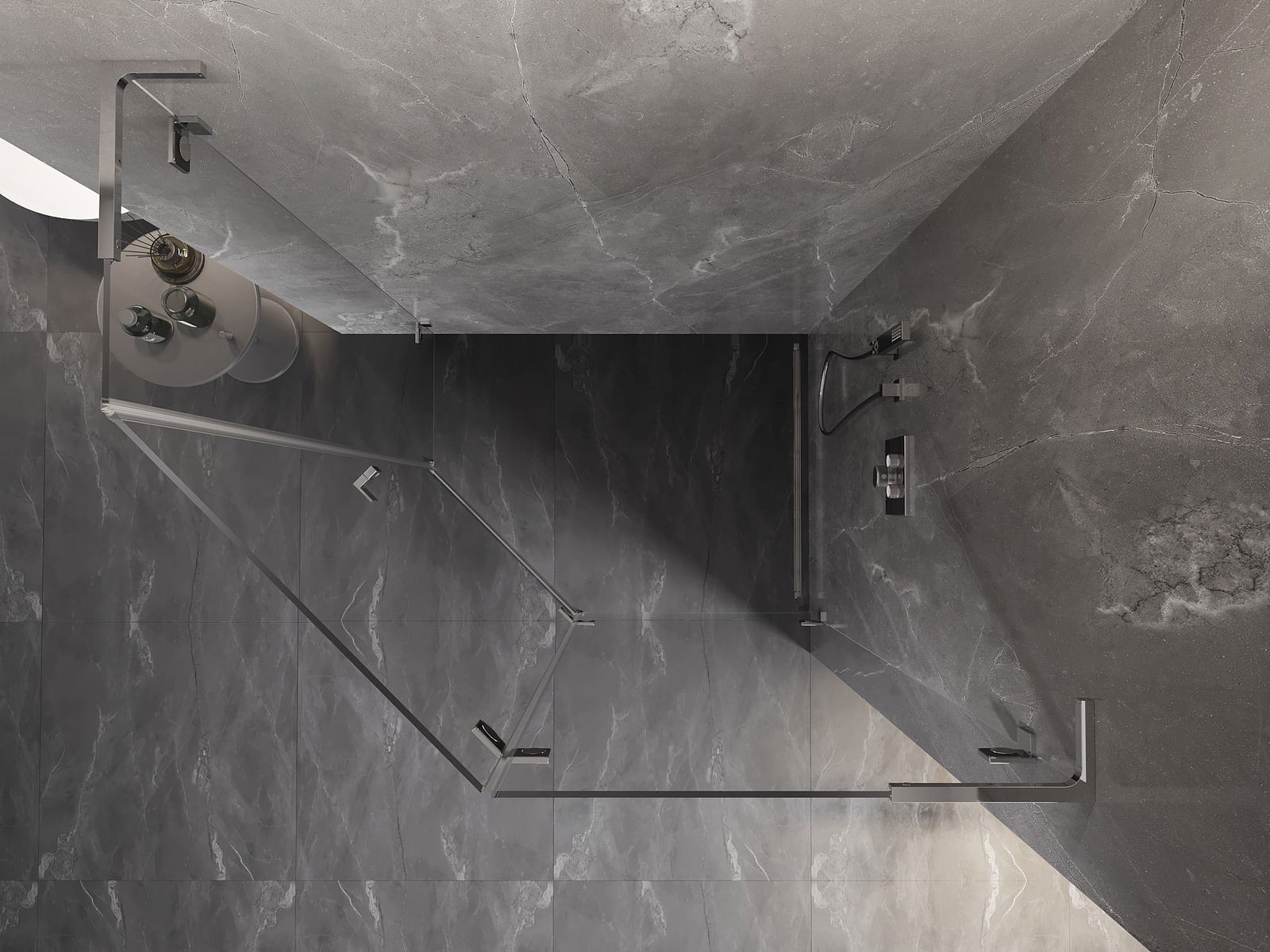 Mexen Lunar L cabine de douche pentagonale pivotante droite 90 x 80 cm, transparent, chrome - 831L-090P-080L-01-00-P