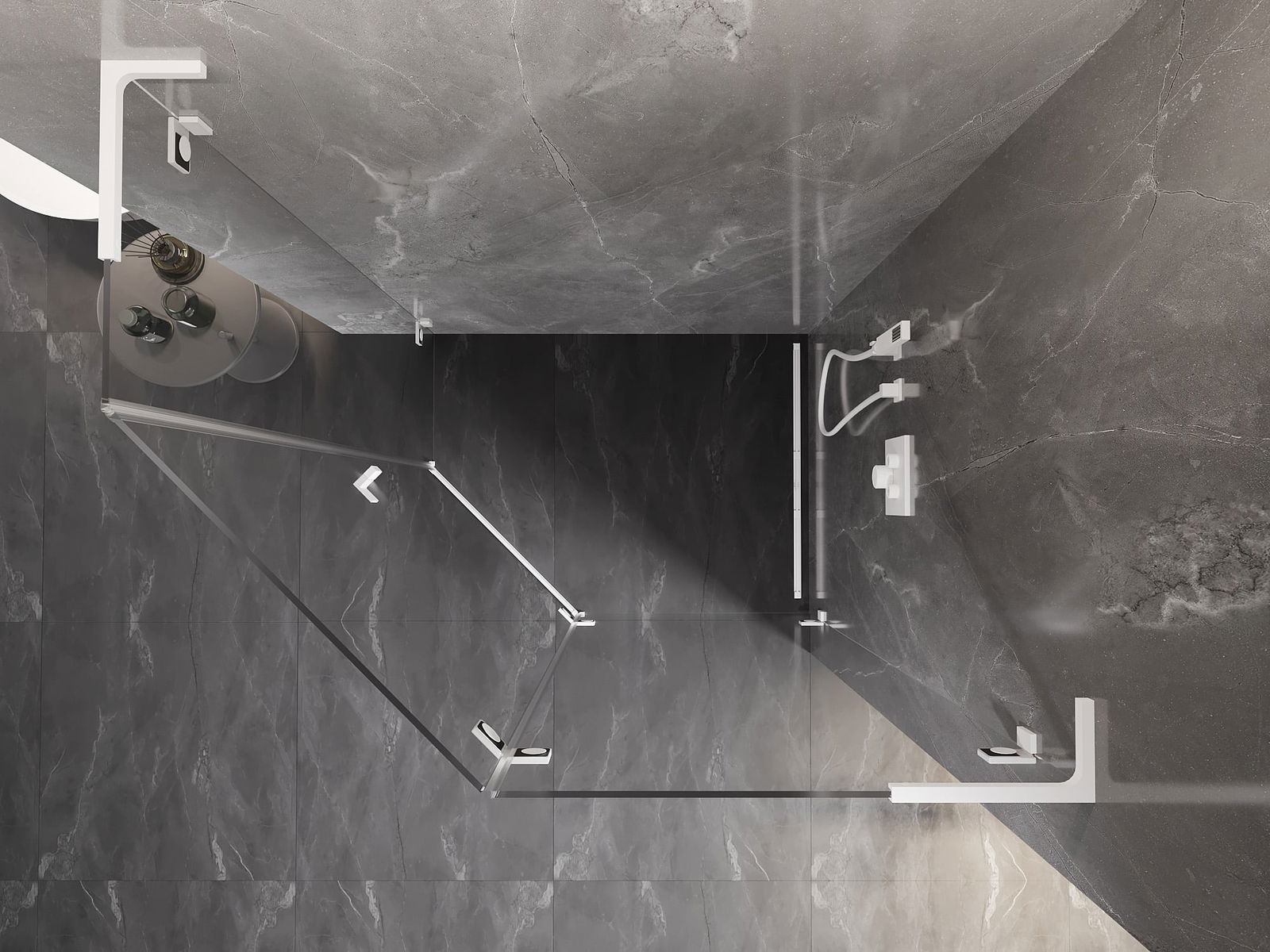 Mexen Lunar L cabine de douche pentagonale pivotante droite 90 x 80 cm, transparent, blanc - 831L-090P-080L-20-00-P