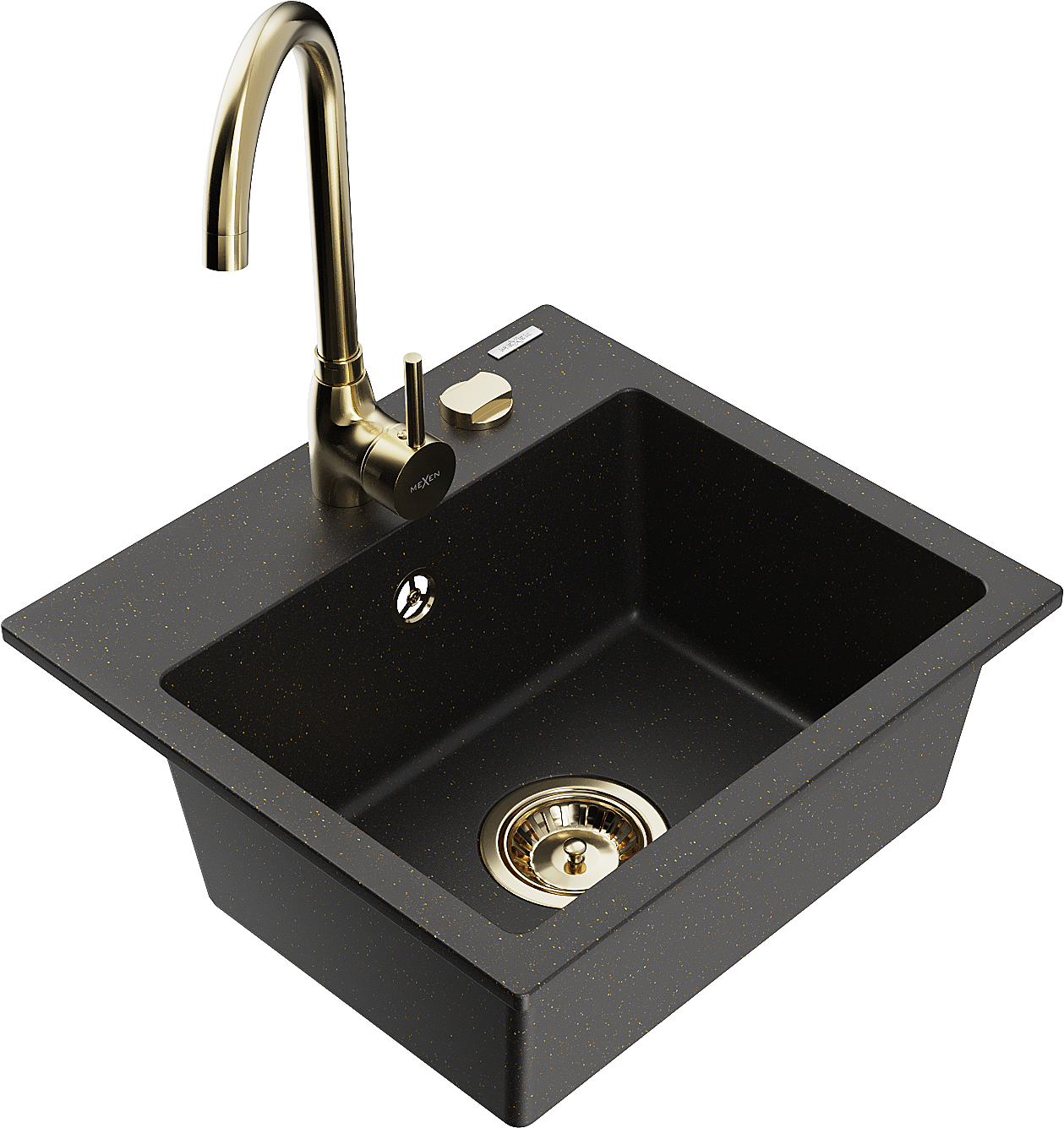 Mexen Milo évier en granit 1 bac avec mitigeur de cuisine Telma, noir/or - 6505-75-670200-50
