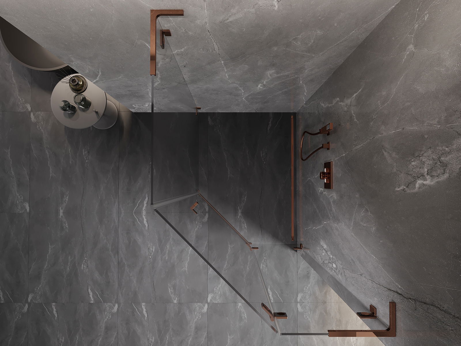 Mexen Lunar L cabine de douche pentagonale pivotante droite 80 x 90 cm, transparent, or rose - 831L-080P-090L-60-00-P