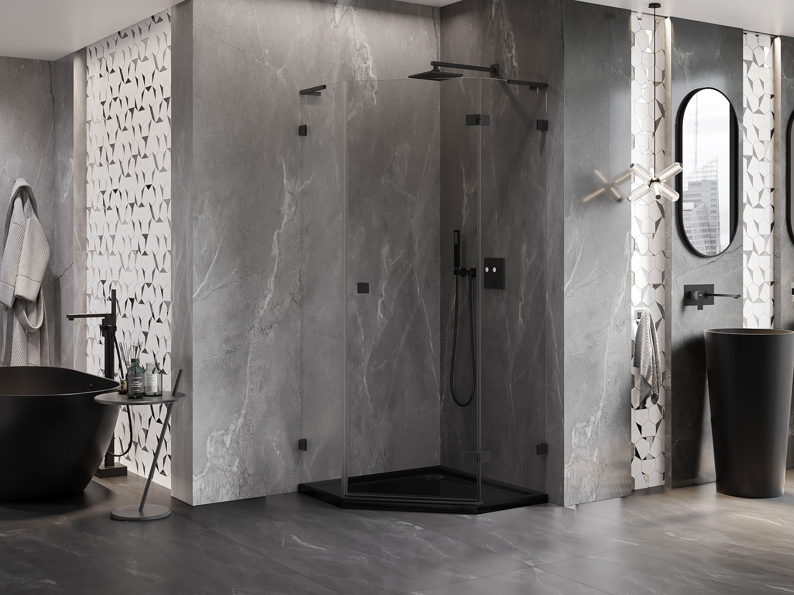 Mexen Lunar L cabine de douche pentagonale pivotante à droite 80 x 80 cm, transparent, noir - 831L-080P-080L-70-00-P
