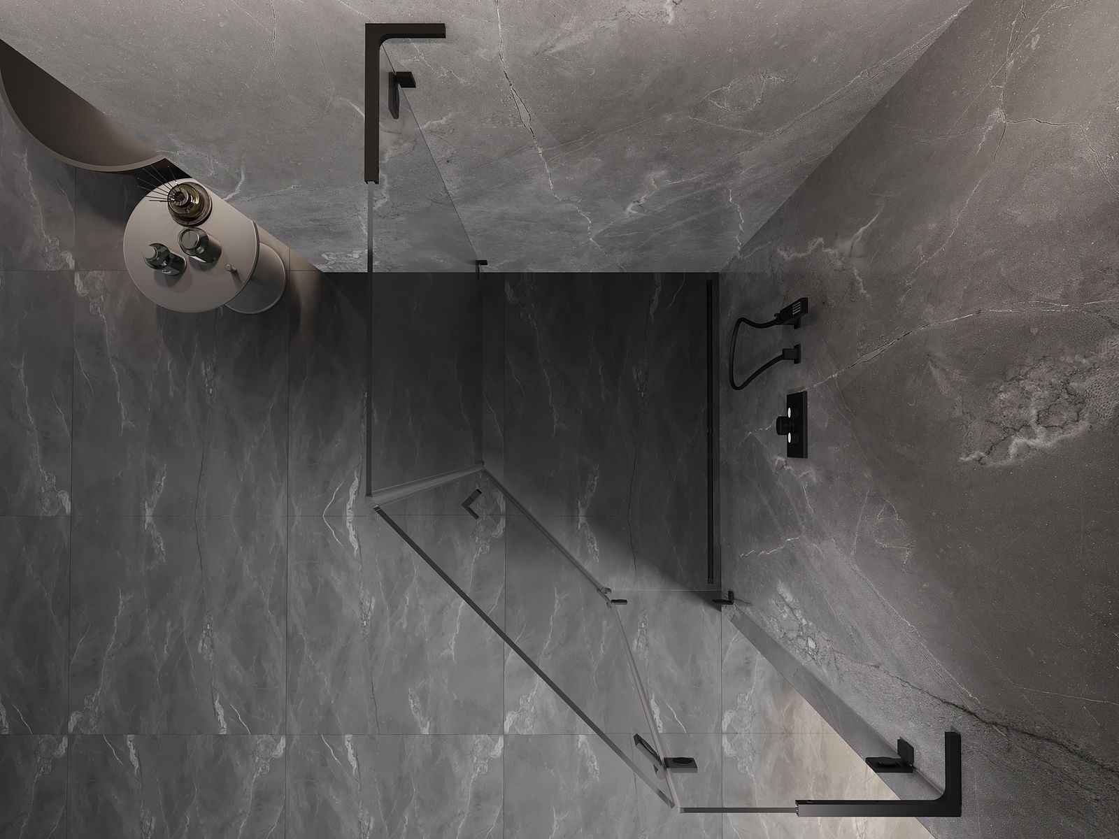Mexen Lunar L cabine de douche pentagonale pivotante droite 80 x 90 cm, transparent, noir - 831L-080P-090L-70-00-P