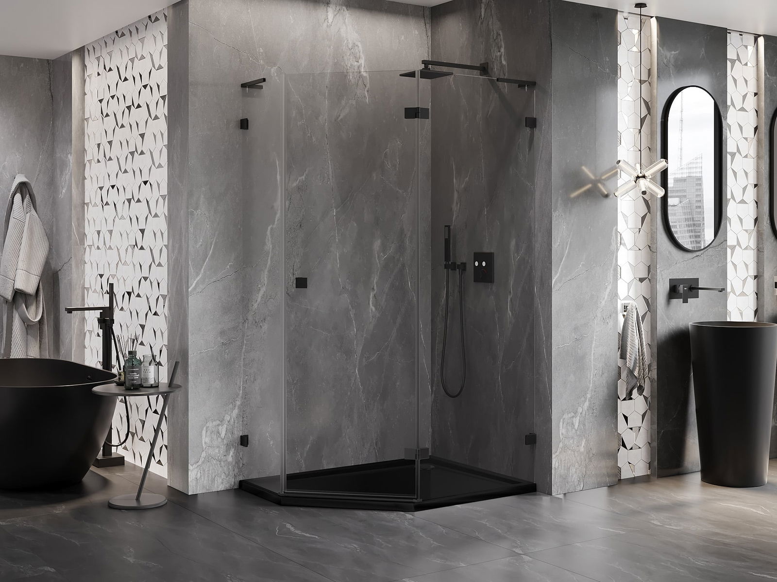 Mexen Lunar L cabine de douche pentagonale pivotante droite 100 x 80 cm, transparent, noir - 831L-100P-080L-70-00-P