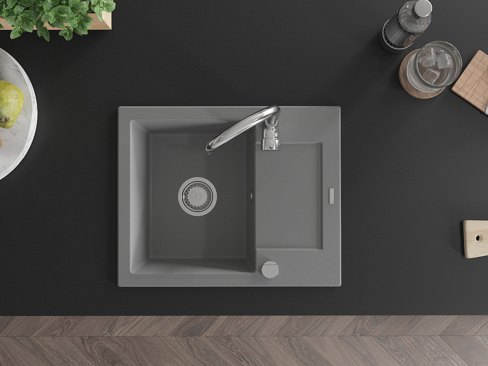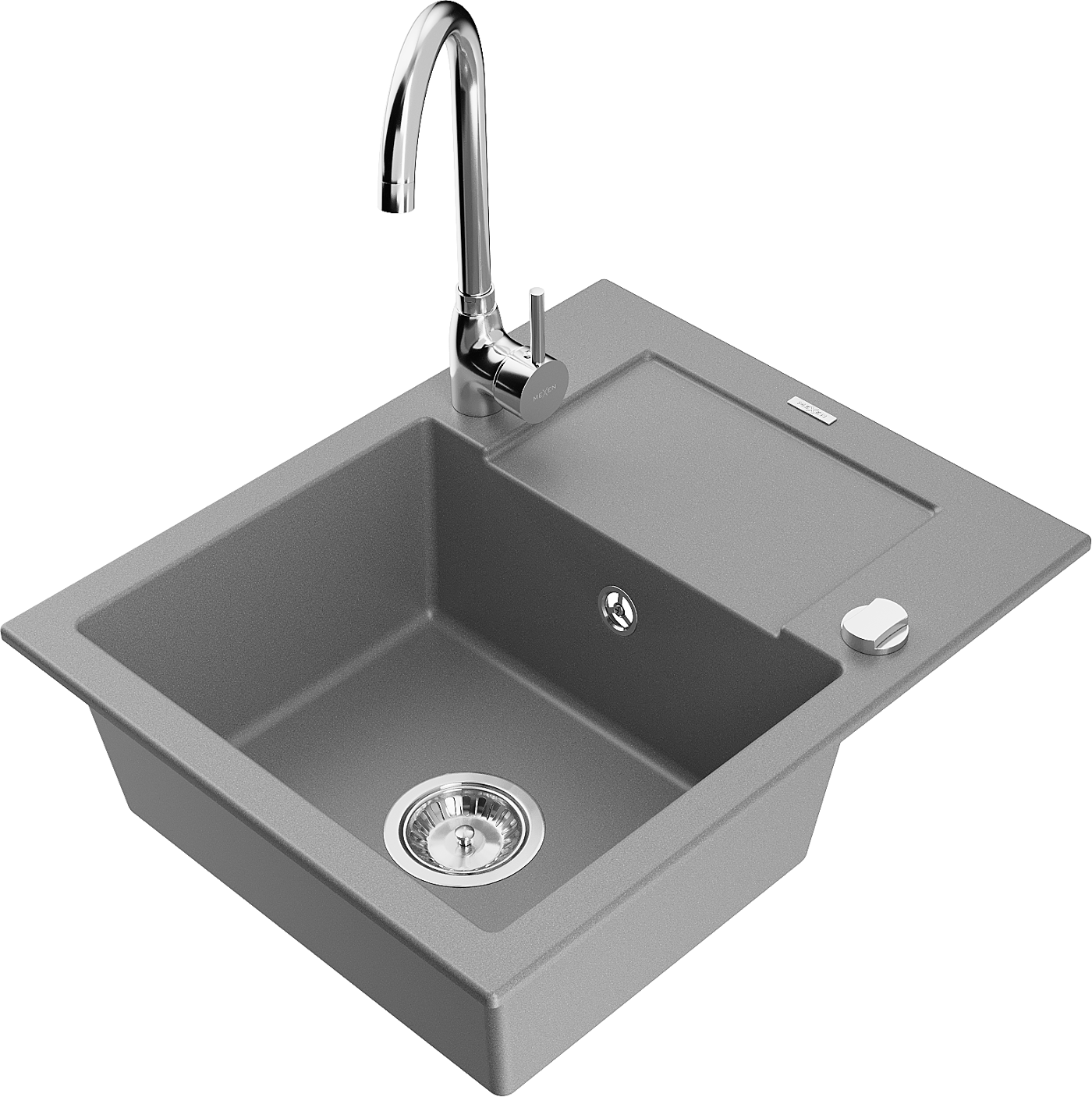 Mexen Enzo évier en granit 1 bac avec égouttoir et robinet de cuisine Telma, gris - 6506-71-670200-00
