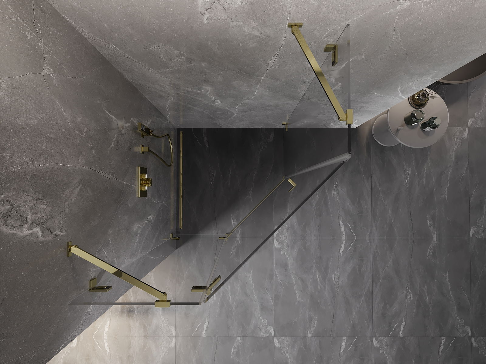 Mexen Lunar cabine de douche pentagonale pivotante gauche 90 x 90 cm, transparente, dorée - 831-090L-090P-50-00-L