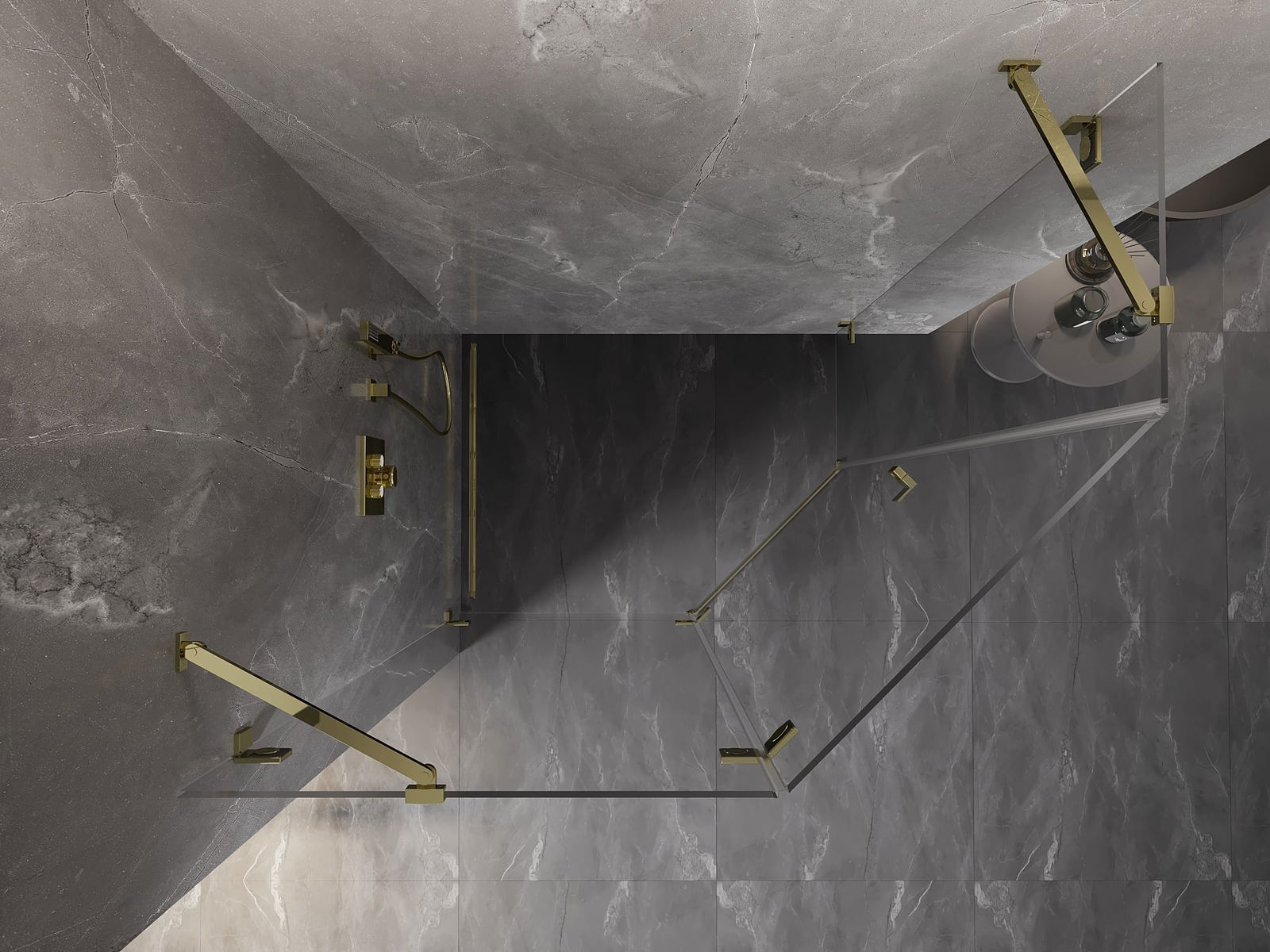 Mexen Lunar cabine de douche pentagonale pivotante gauche 100 x 80 cm, transparent, doré - 831-100L-080P-50-00-L