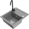Mexen Enzo évier en granit à 1 bac avec égouttoir et robinet de cuisine Telma, noir/argent - 6506-73-670200-70