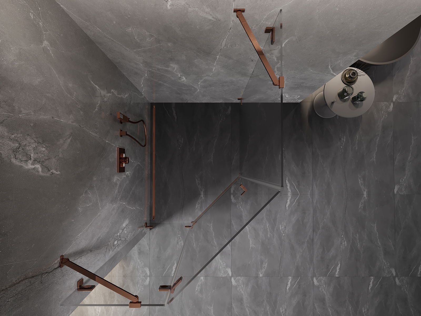 Mexen Lunar cabine de douche pentagonale pivotante gauche 80 x 100 cm, transparent, or rose - 831-080L-100P-60-00-L