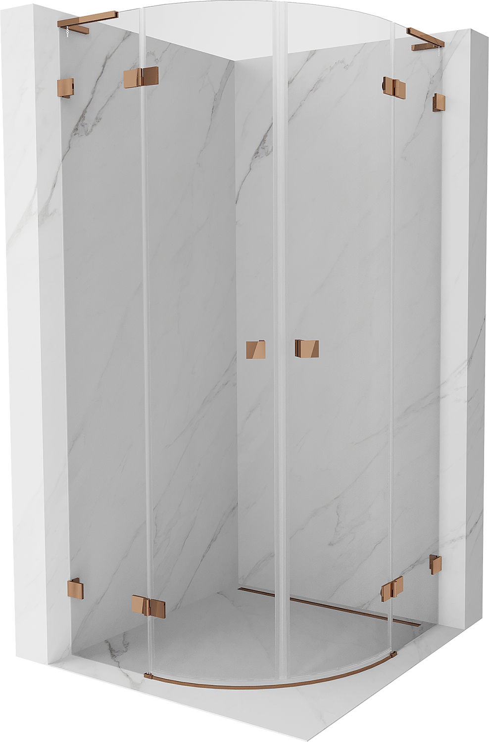 Mexen Lunar L cabine de douche semi-circulaire battante 80 x 80 cm, transparent, or rose - 833L-080L-080P-60-00