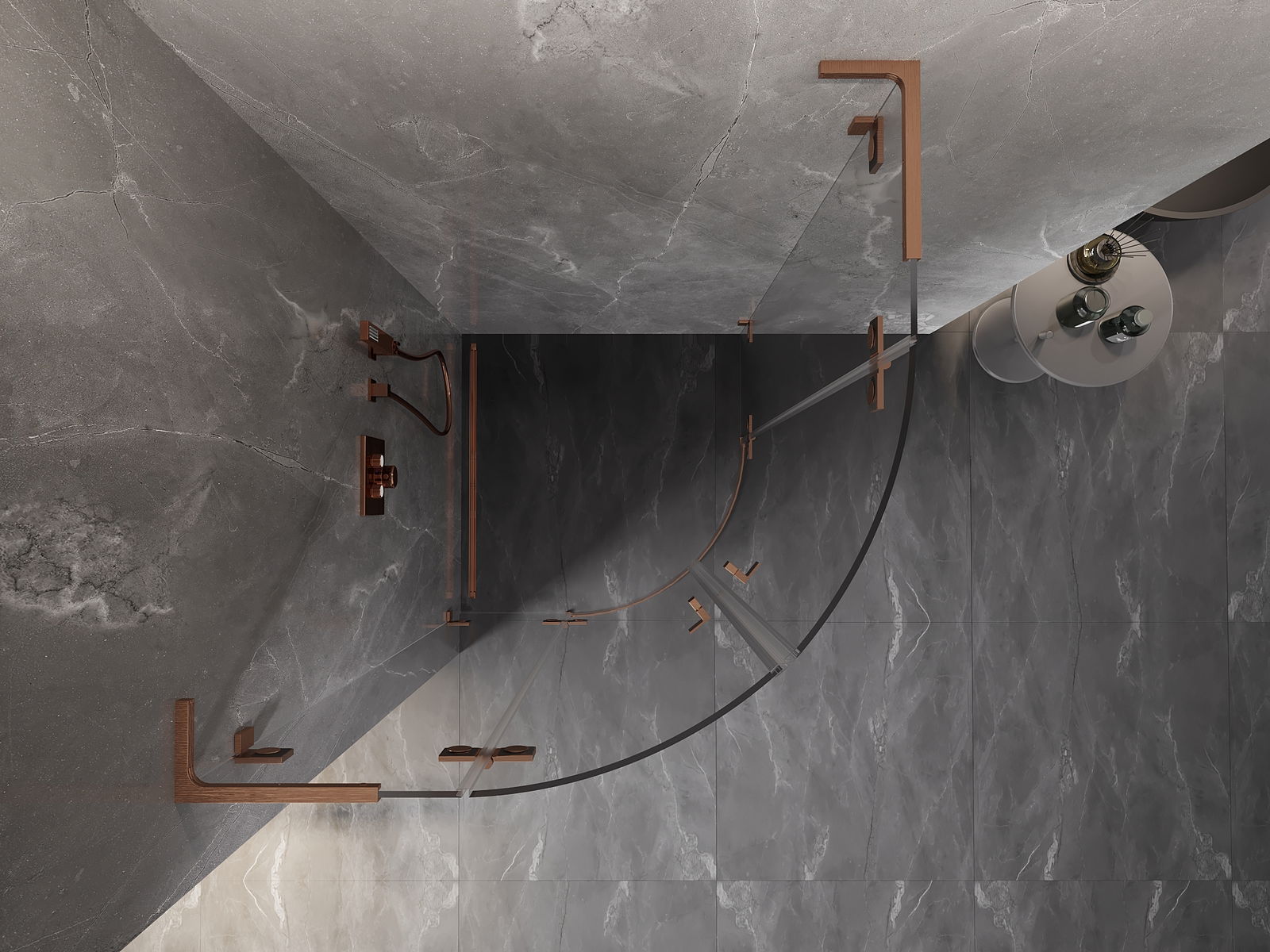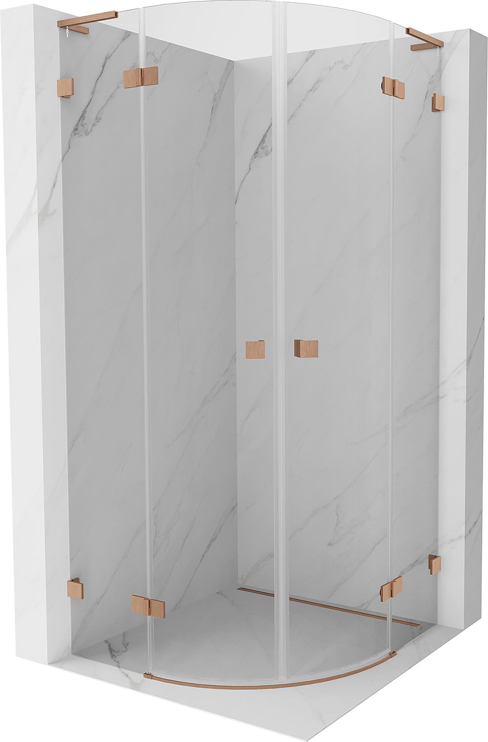 Mexen Lunar L cabine de douche semi-circulaire pivotante 90 x 90 cm, transparent, cuivre brossé - 833L-090L-090P-65-00