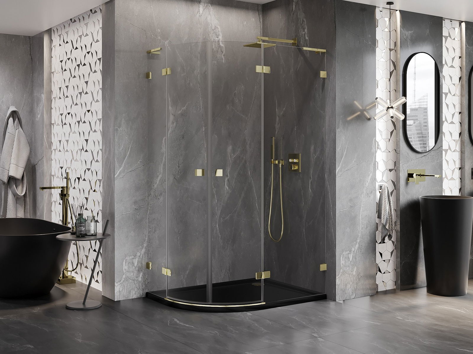 La poignée pratique et confortable est fabriquée en métal durable et résistant. Sa forme à la mode, combinée à une finition assortie à la couleur des profilés, donne à l'ensemble un aspect moderne et stylé, soulignant l'esthétique de chaque salle de bain.