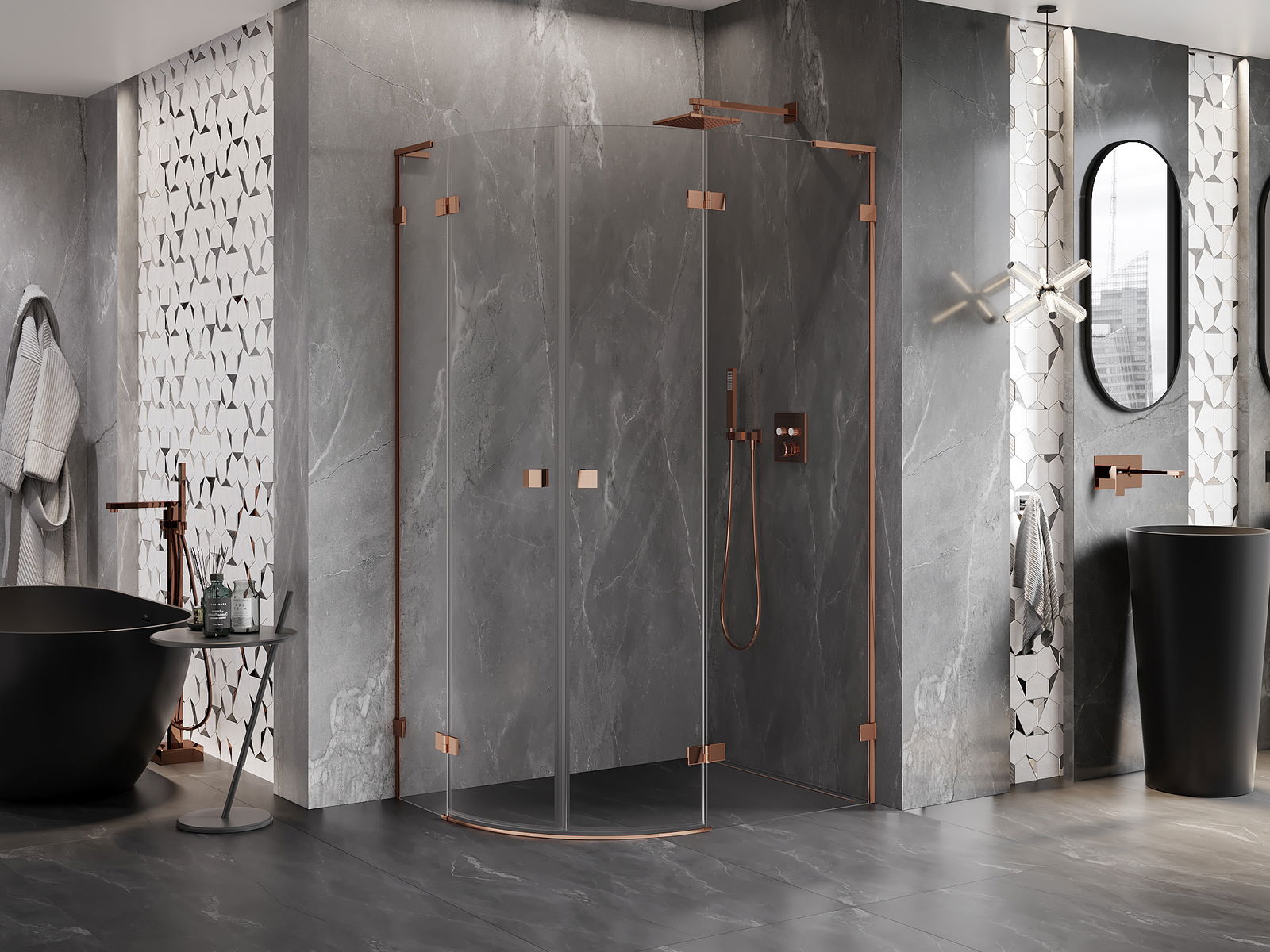 Mexen Lunar L cabine de douche semi-circulaire pivotante droite 90 x 80 cm, transparente, or rose - 833L-090P-080L-60-00