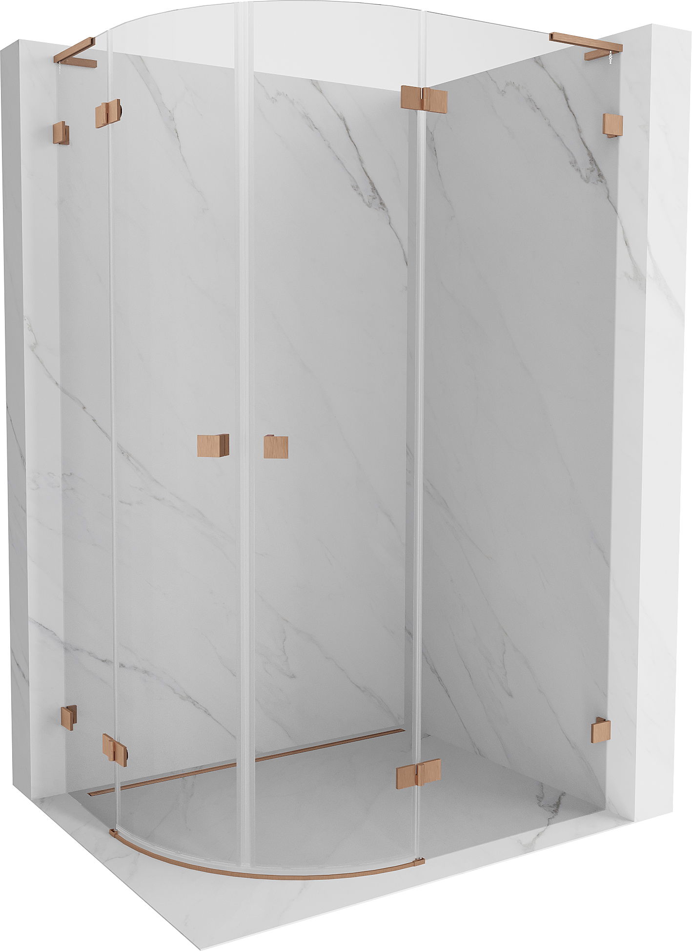 Mexen Lunar L cabine de douche demi-circulaire pivotante droite 100 x 80 cm, transparent, cuivre brossé - 833L-100P-080L-65-00
