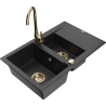 Mexen Gaspar évier en granit 1,5 bac avec égouttoir et robinet de cuisine Telma, noir/or - 6507-75-670200-50