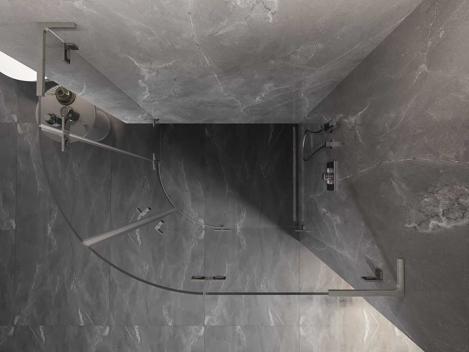 Mexen Lunar L cabine de douche semi-circulaire pivotante à droite 100 x 70 cm, transparente, nickel brossé