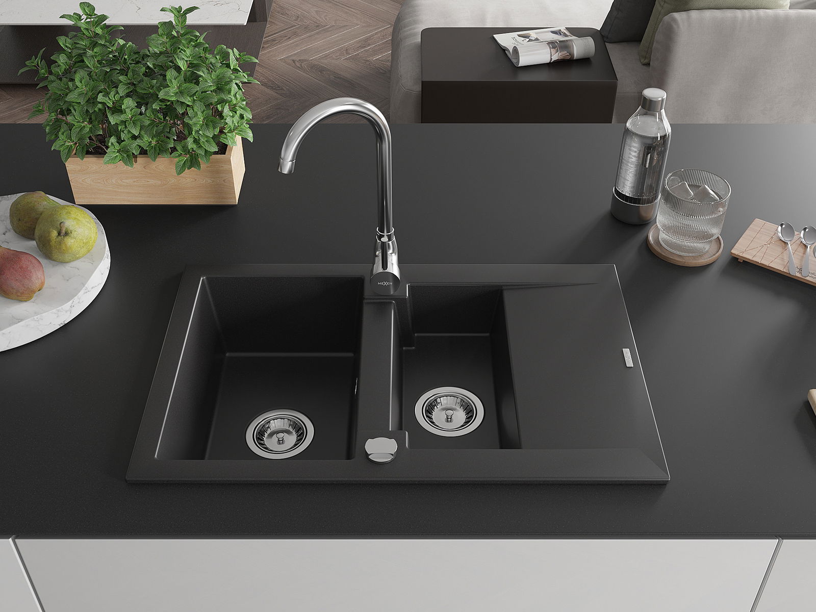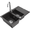Mexen Gaspar évier en granit 1,5 bac avec égouttoir et robinet de cuisine Telma, noir - 6507-77-670200-00