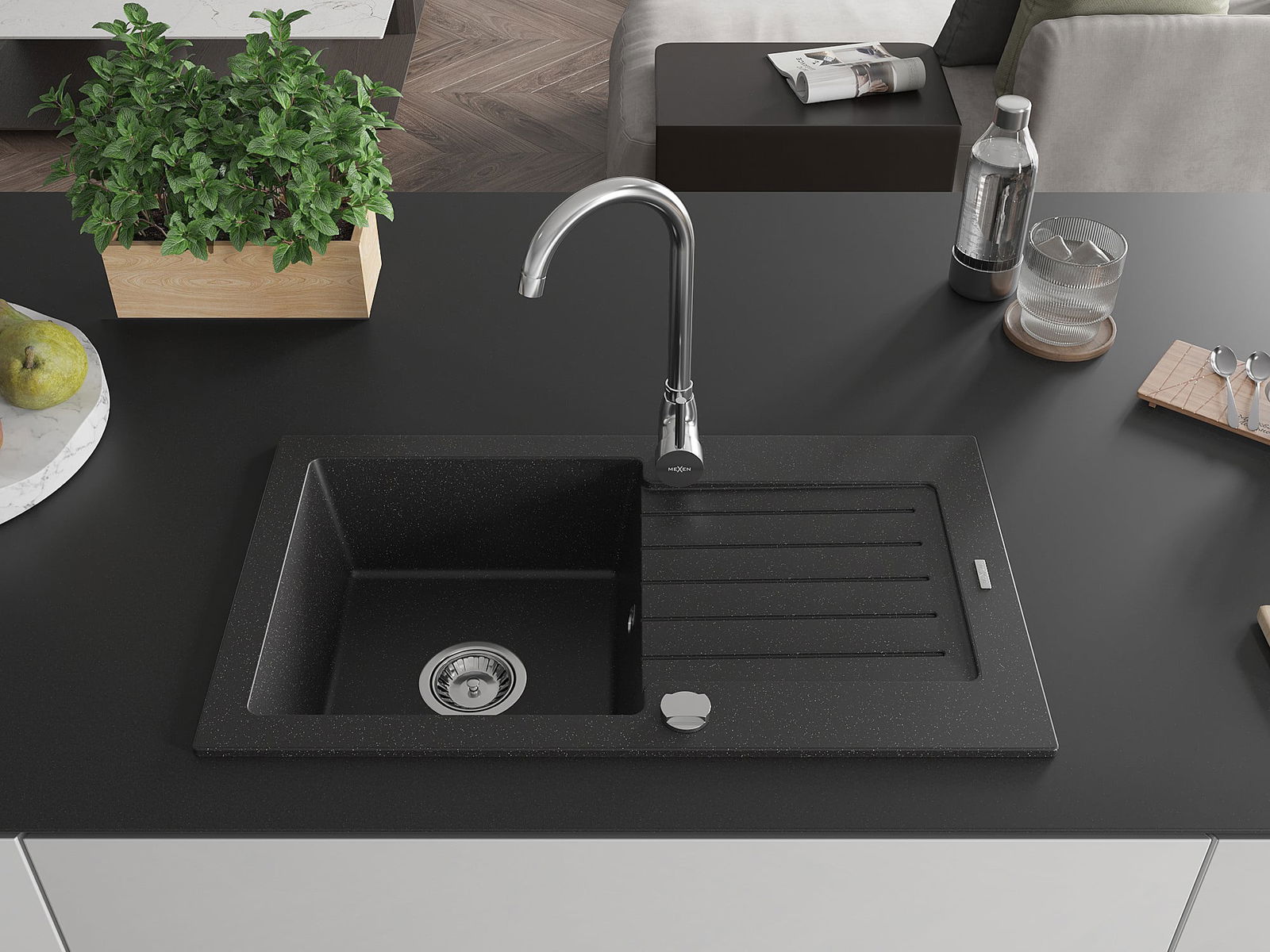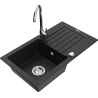 Mexen Pablo évier en granit 1 bac avec égouttoir et robinet de cuisine Telma, noir/argent - 6510-73-670200-00