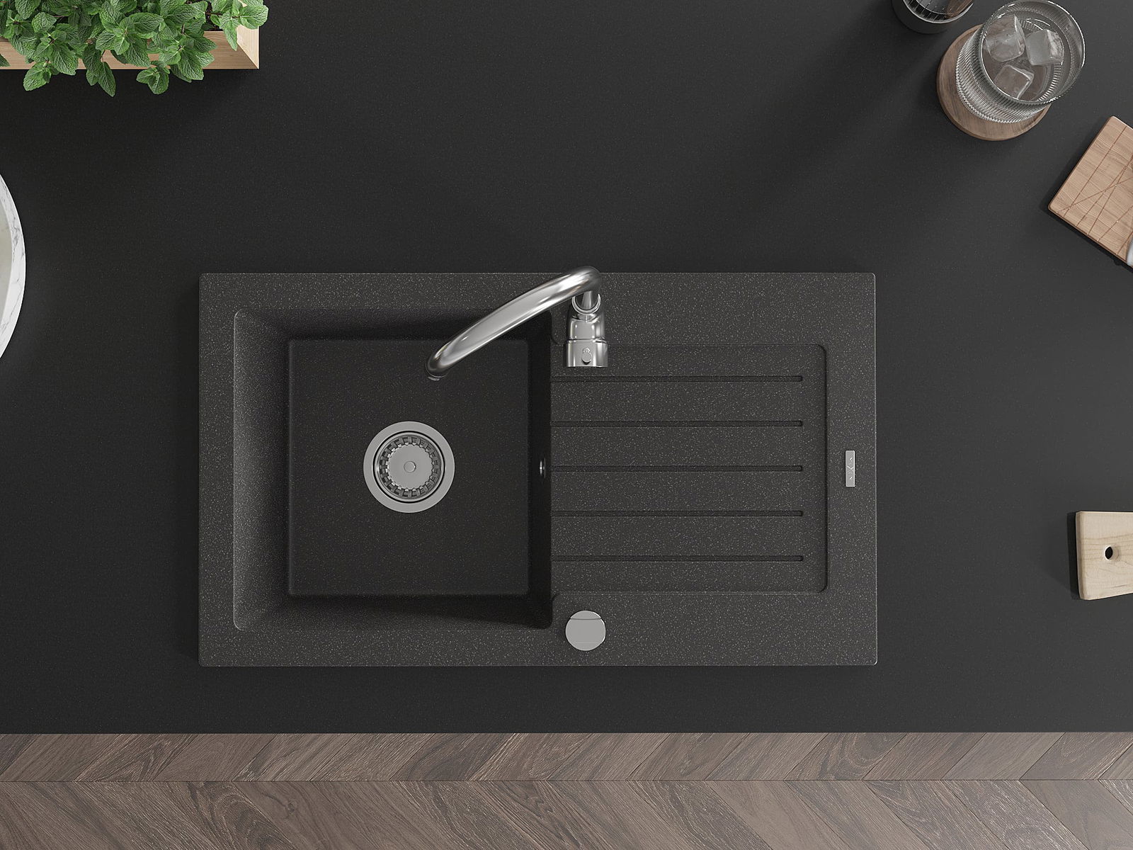 L'évier a été fabriqué en granit de haute qualité. Il constitue un complément élégant et surtout pratique à toute cuisine, quel que soit son style. La haute qualité et la durabilité du granit garantissent une utilisation pendant de nombreuses années.