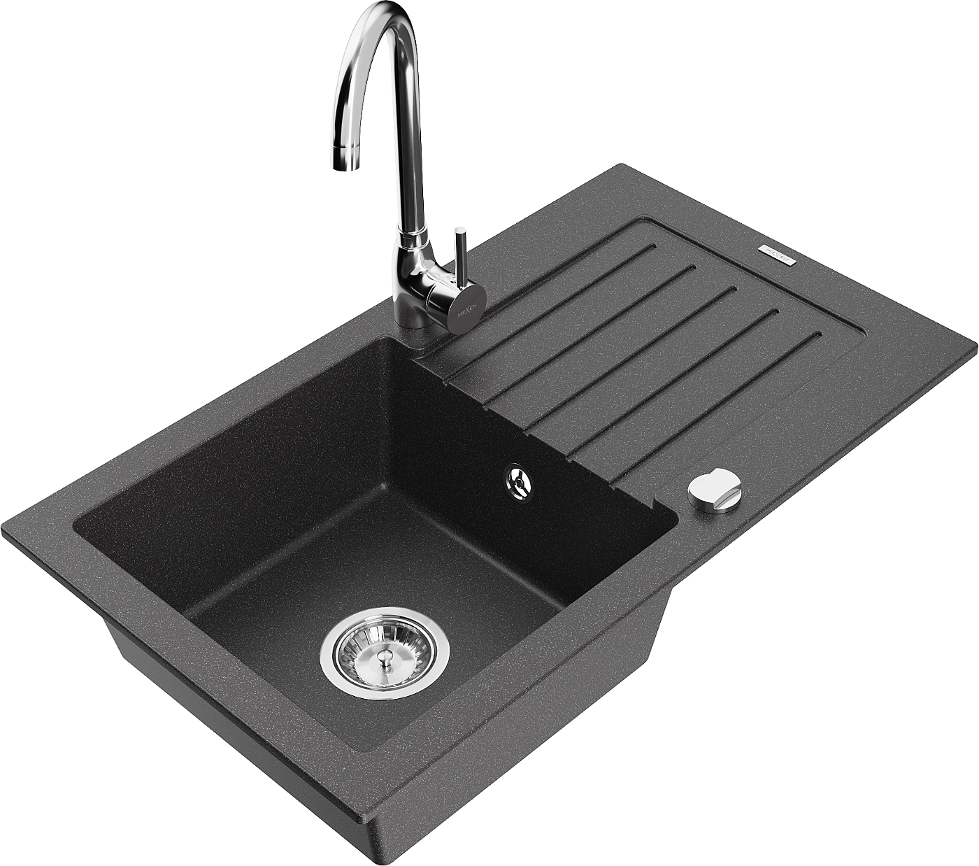 Mexen Pablo évier en granit 1 bac avec égouttoir et robinet de cuisine Telma, noir moucheté - 6510-76-670200-00