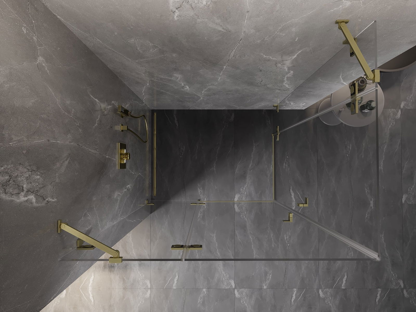 Mexen Lunar Duo cabine de douche pivotante gauche 100 x 90 cm, transparente, finition or brossé - 834-100L-090P-55-00