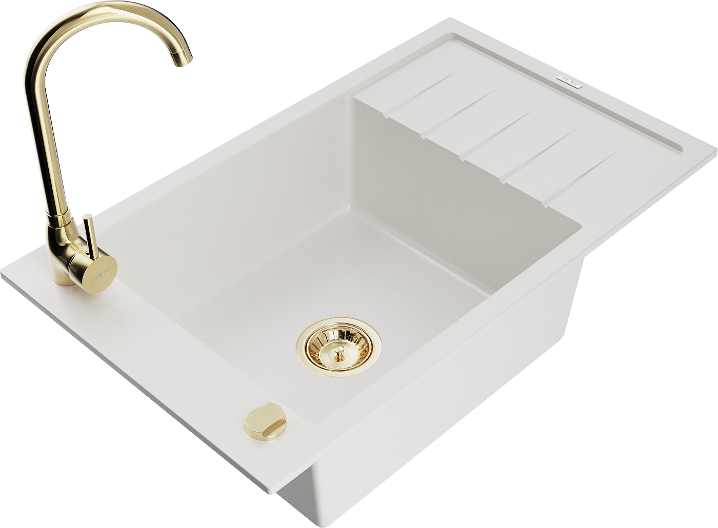Mexen Elias évier en granit à 1 bac avec égouttoir et robinet de cuisine Telma, blanc - 6511-20-670200-50