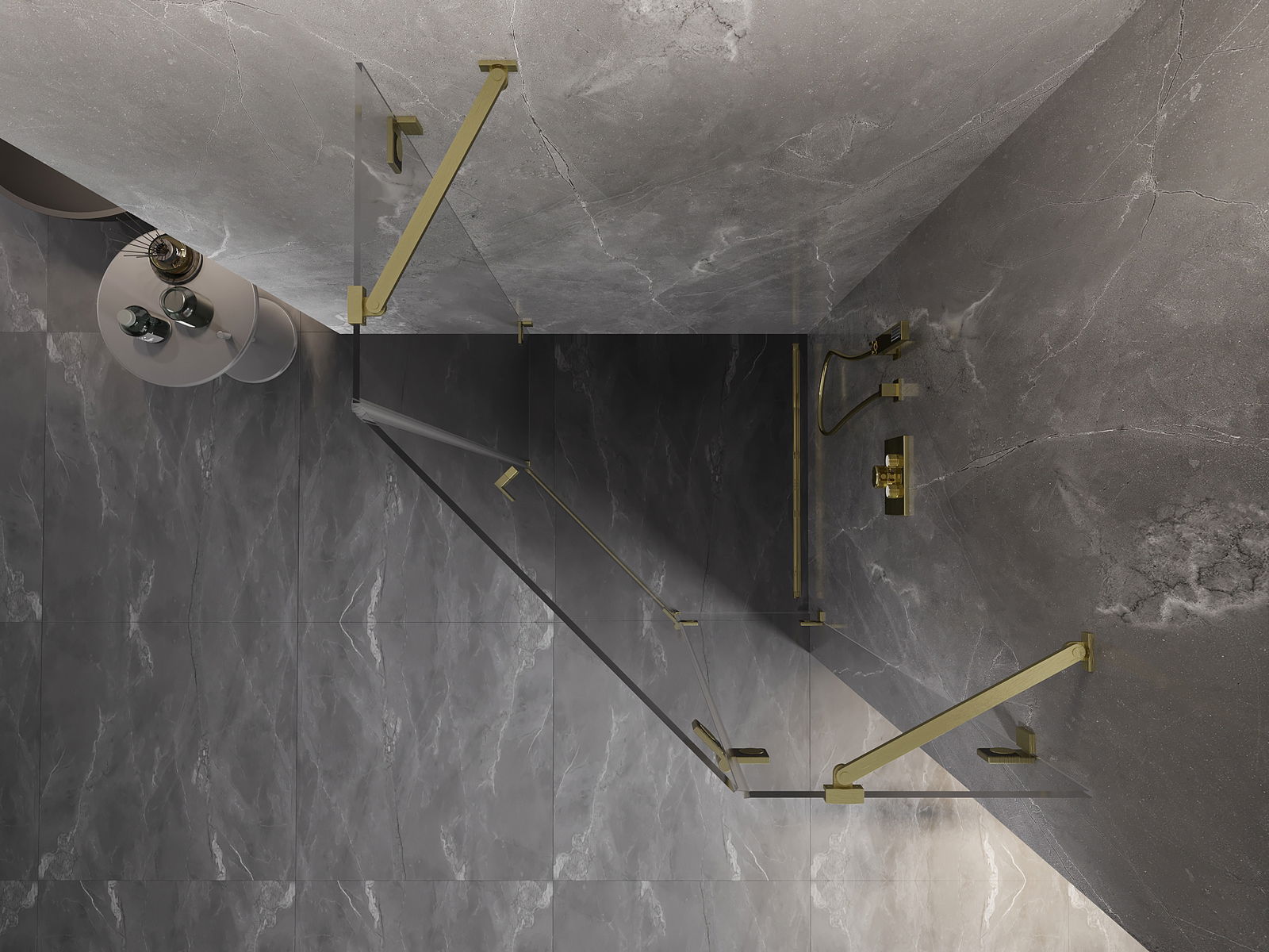 Mexen Lunar cabine de douche pentagonale pivotante droite 90 x 90 cm, transparent, or brossé - 831-090P-090L-55-00-P